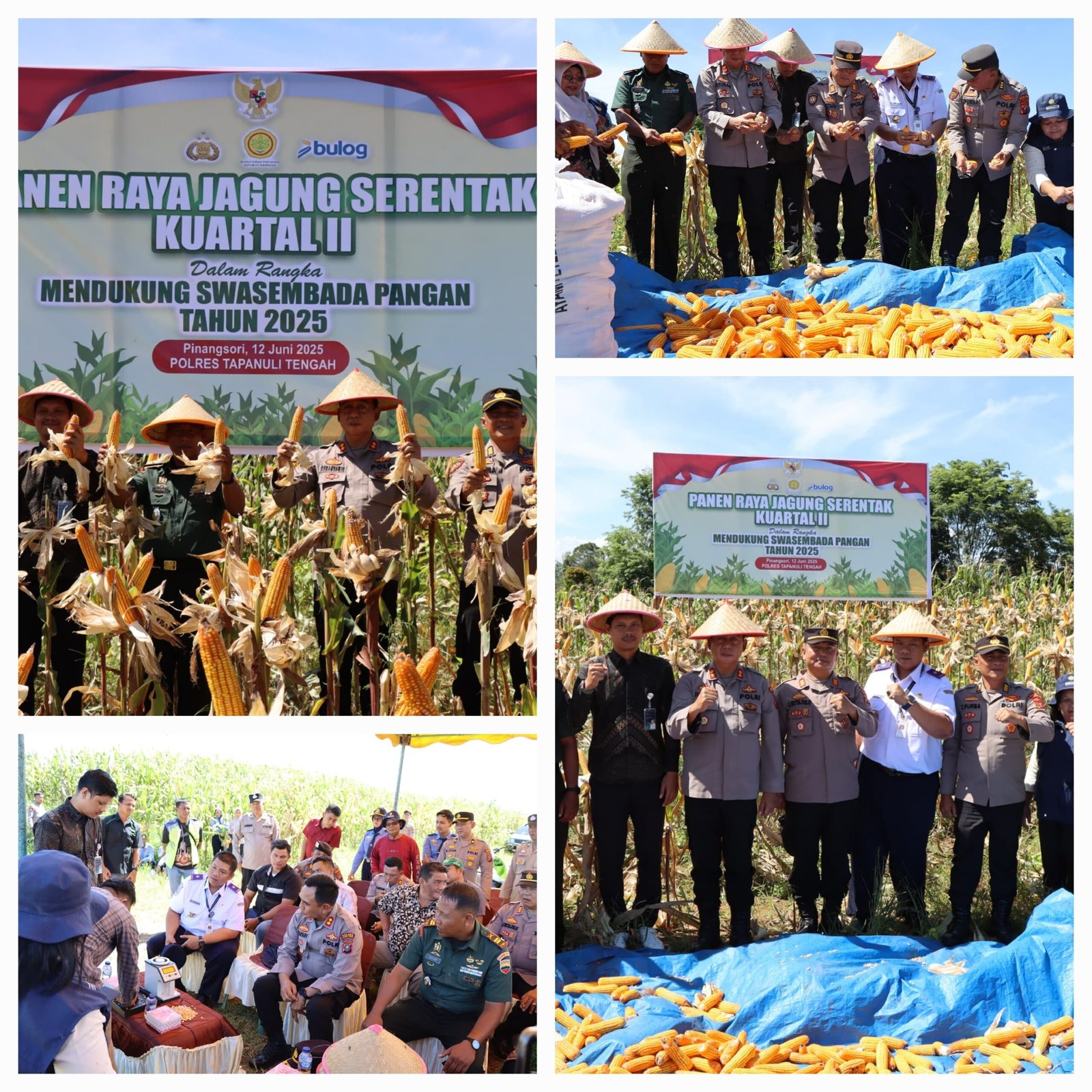 Tapteng – Polres Tapanuli Tengah bekerjasama dengan instansi terkait laksanakan panen raya jagung kuartal ke II tahun 2025 pada lahan kosong areal bandara di Lingkungan IX Kel. Pinangsori Kec. Pinangsori Kab. Tapteng. Kamis (12/6/2025) sekitar pukul 14.00 Wib.