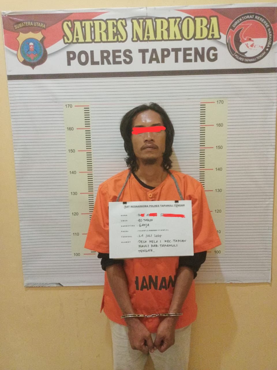 Tersangka, yang diidentifikasi sebagai BAS (40), seorang pria beragama Islam yang beralamat di Desa Mela I, Kecamatan Tapian Nauli, Kabupaten Tapanuli Tengah, ditangkap pada hari Kamis, 24 Juli 2025, sekitar pukul 17.00 WIB.Dari tangan tersangka, petugas berhasil mengamankan sejumlah barang bukti, antara lain 10 paket ganja dengan berat bruto total 12,34 gram dan satu bungkus rokok merek Luffman berwarna merah.