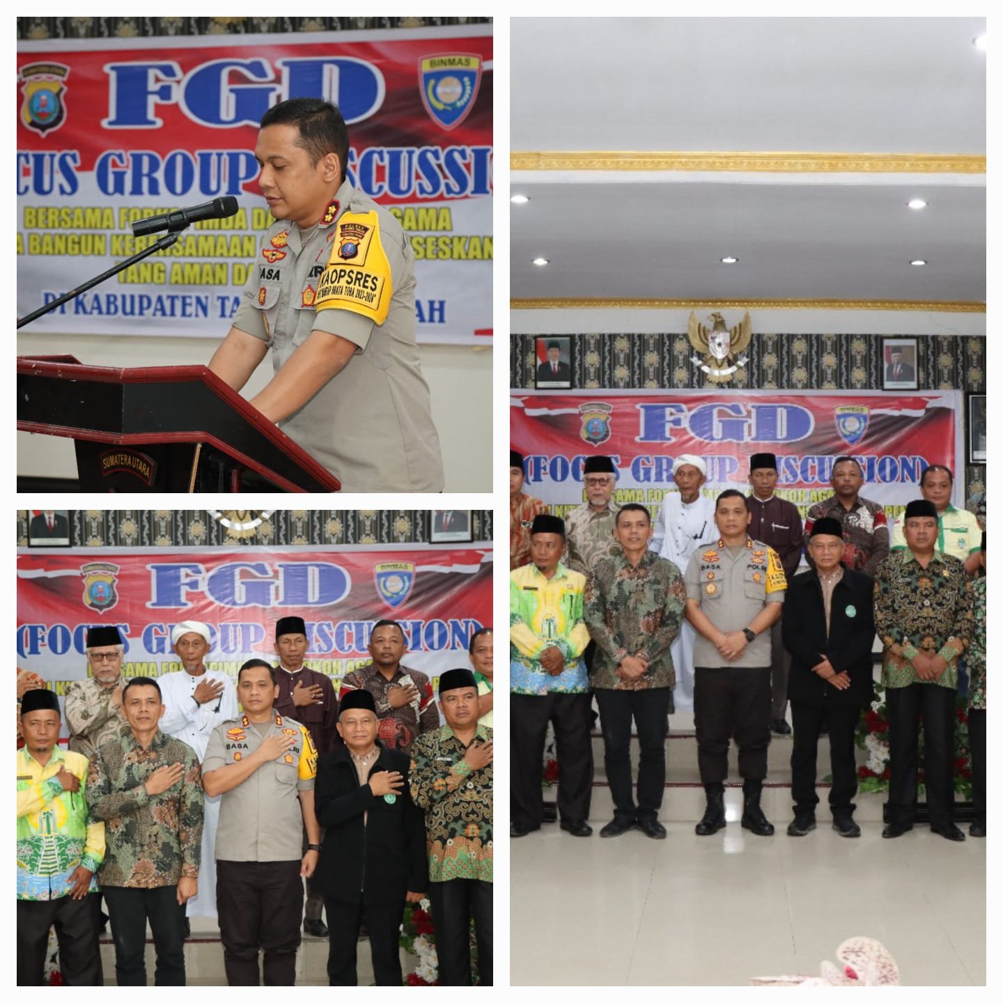 Tapteng – Polres Tapanuli Tengah laksanakan Focus Group Discussion (FGD) Bersama Forkopimda dan Tokoh Agama, Kamis (25/1/2024) pukul 09.30 Wib