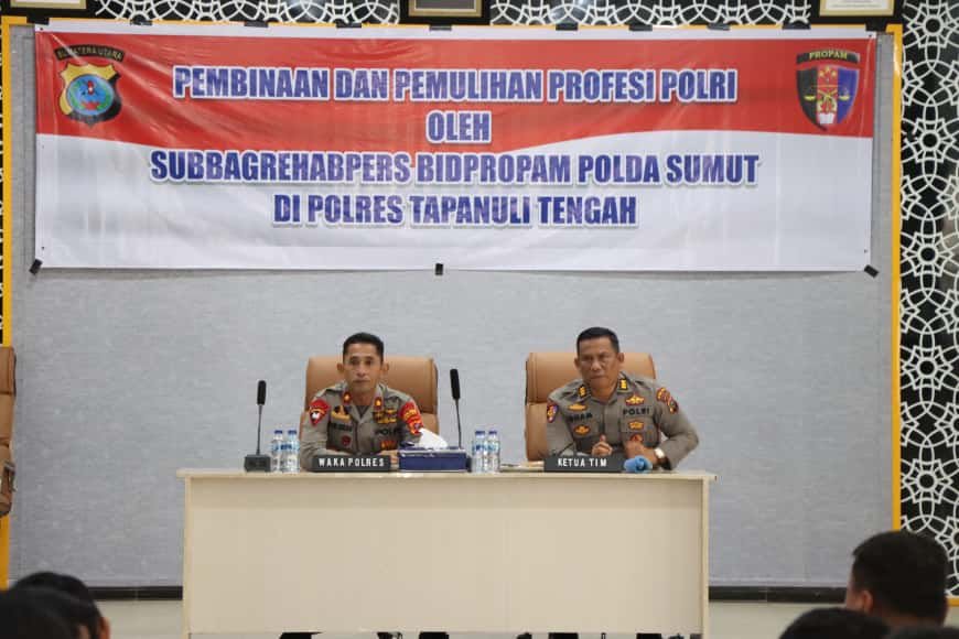 refubliknews.com, || Tapanuli Tengah, [5 November 2025] – Kepolisian Resor (Polres) Tapanuli Tengah (Tapteng) menyelenggarakan kegiatan Pembinaan dan Pemulihan Profesi Polri bekerja sama dengan Subbag Rehabilitasi Personel (Rehappers) Bidang Profesi dan Pengamanan (Bid Propam) Polda Sumatera Utara (Sumut).