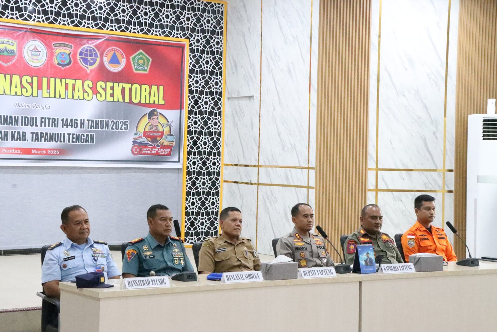 Tapanuli Tengah – Dalam rangka kesiapan pengamanan Idul Fitri 1446 H, Polres Tapanuli Tengah menggelar Rapat Koordinasi Lintas Sektoral pada Selasa (18/3/2025) di Aula Prama Satwika. Rapat yang dipimpin oleh Kapolres Tapteng, AKBP Wahyu Endra Jaya, S.I.K., M.Si, ini bertujuan menyusun strategi guna memastikan keamanan dan kelancaran lalu lintas selama libur Lebaran di wilayah Kabupaten Tapanuli Tengah.