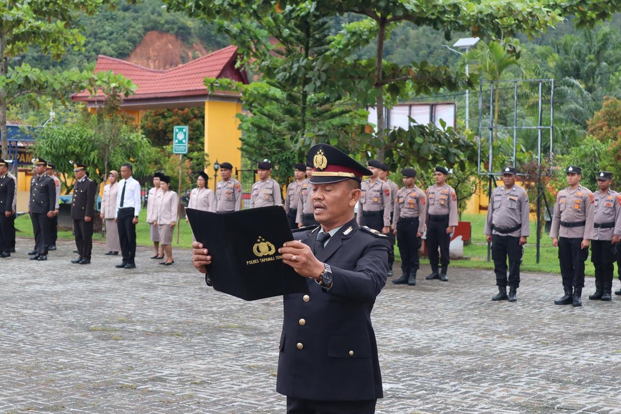 Upacara dipimpin oleh Kabag Ops Polres Tapteng, AKP Daniel P. Sinaga, S.H., dan diikuti oleh seluruh elemen kepolisian, mulai dari Perwira Pertama (Pama), Satuan Samapta, Satuan Lalu Lintas, hingga gabungan Satuan Reserse Kriminal, Narkoba, Intelijen, serta Aparatur Sipil Negara (ASN).
