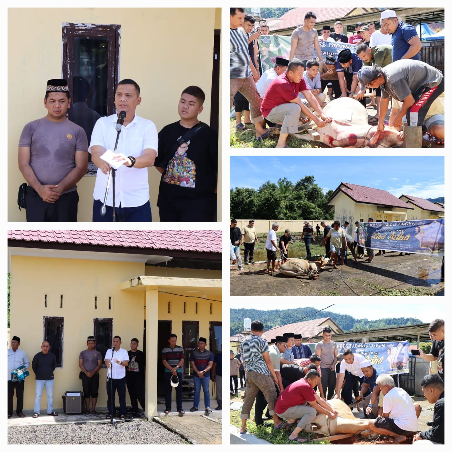 “Hewan qurban tersebut juga merupakan pemberian dari Kapolres Tapanuli Tengah kepada panitia qurban untuk disembelih serta dari personel Polres Tapteng,” jelas Ipda Zulmansyah