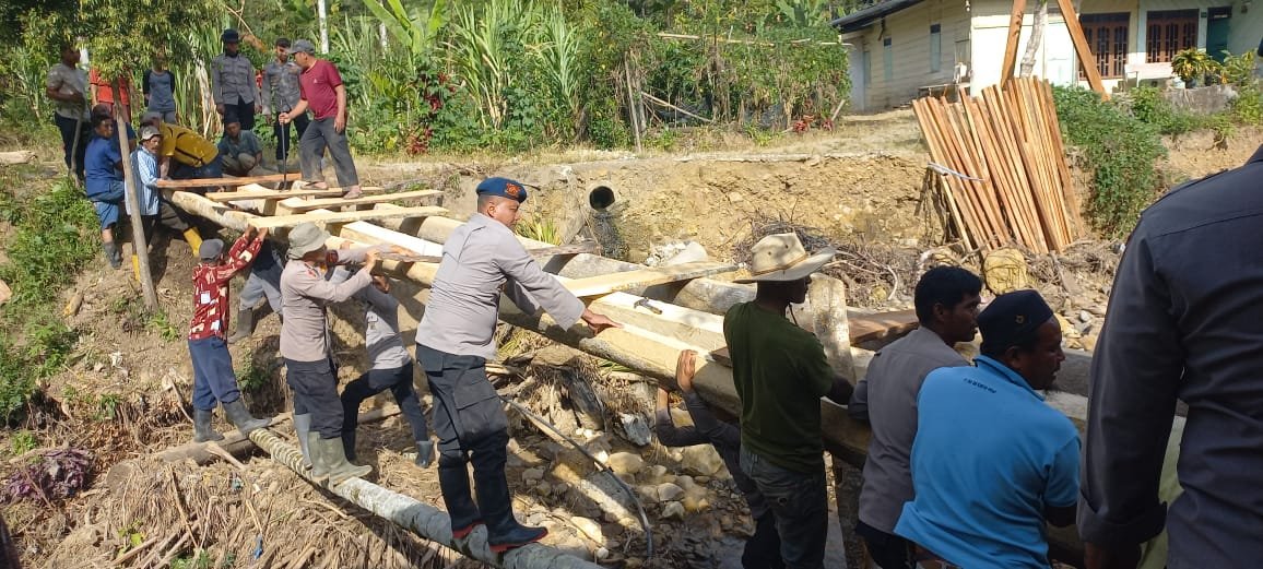“Kami merasakan langsung bagaimana beratnya aktivitas warga ketika akses utama terputus. Anak-anak sulit ke sekolah, hasil kebun terhambat dibawa ke pasar, dan kebutuhan sehari-hari menjadi tidak mudah. Karena itu, Polri hadir bukan sekadar bekerja, tetapi ikut merasakan dan bergotong royong bersama masyarakat,” ungkap Kapolres.