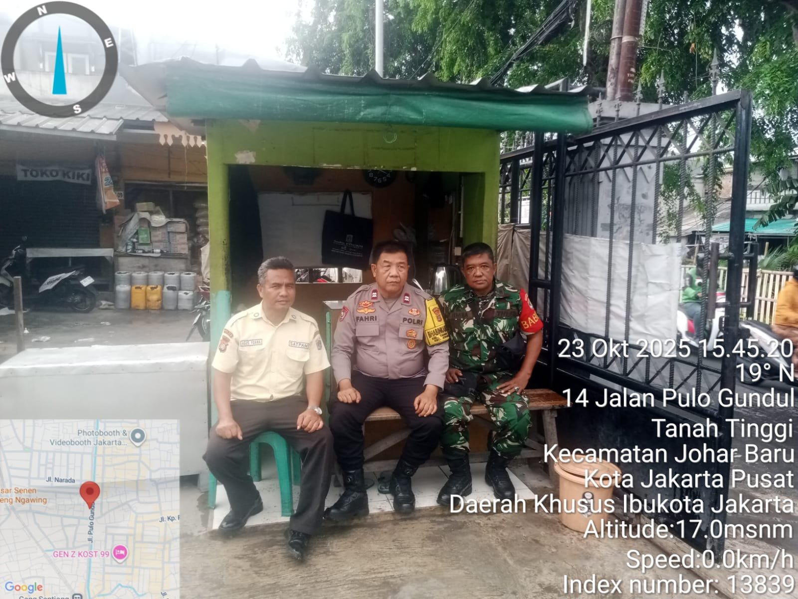 refubliknews.com, || Jakarta Pusat – Sebagai upaya menjaga keamanan dan ketertiban masyarakat, Bhabinkamtibmas Kelurahan Tanah Tinggi, Aiptu Fahri, bersama Babinsa Kelurahan Tanah Tinggi, Pelda Rimba, melaksanakan sambang Pasar Lokbin RW 08 Pulo Gundul pada Kamis (23/10/2025) di Jl. Kramat Pulo Gundul, Kelurahan Tanah Tinggi, Johar Baru, Jakarta Pusat.