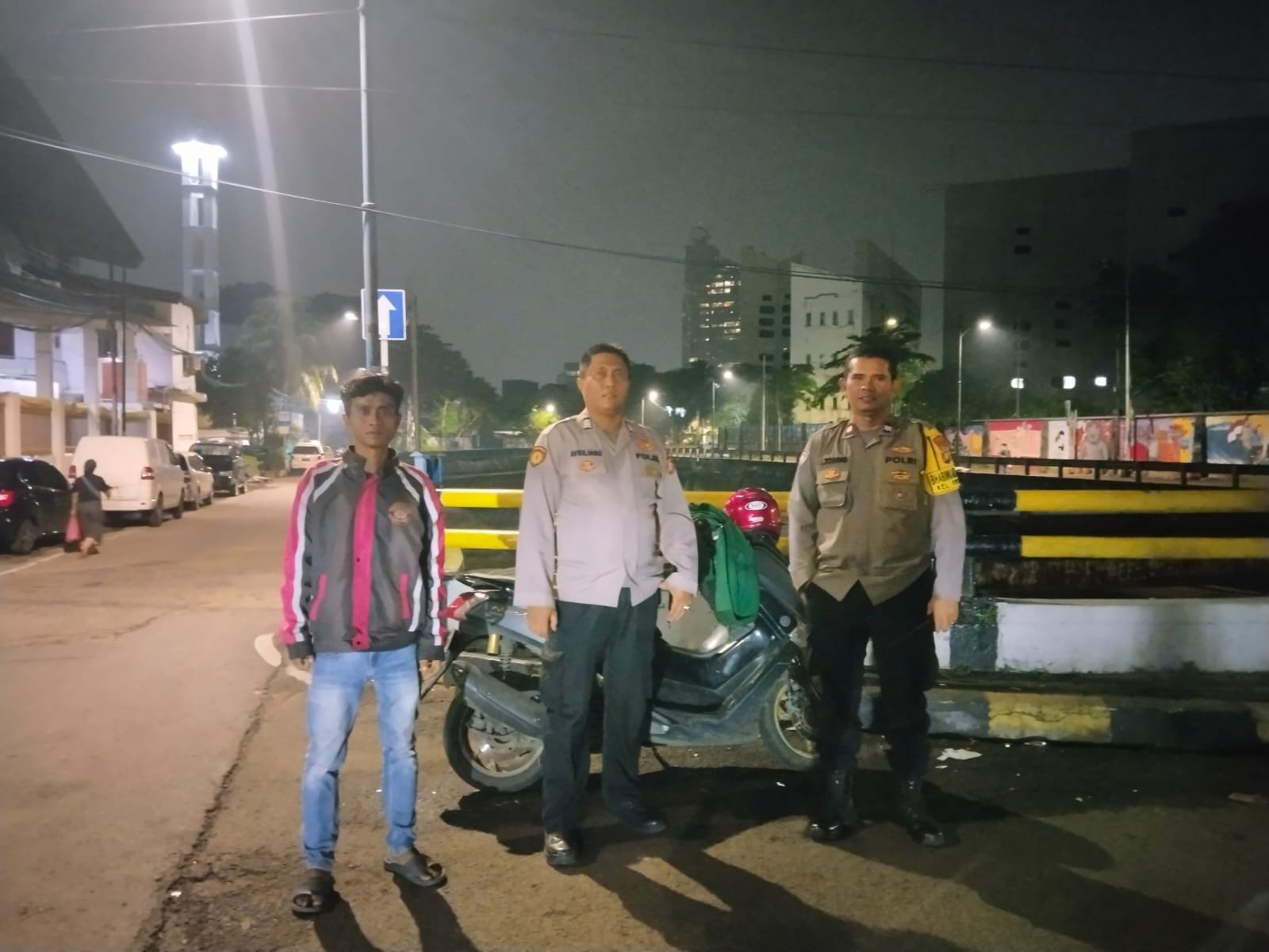 Dua personel, yakni Aiptu Tobing dari unit Binmas dan Bripka Heru dari unit patroli, dikerahkan untuk melakukan patroli mobile serta strong point di kawasan Jembatan Kernolong, Kecamatan Senen.