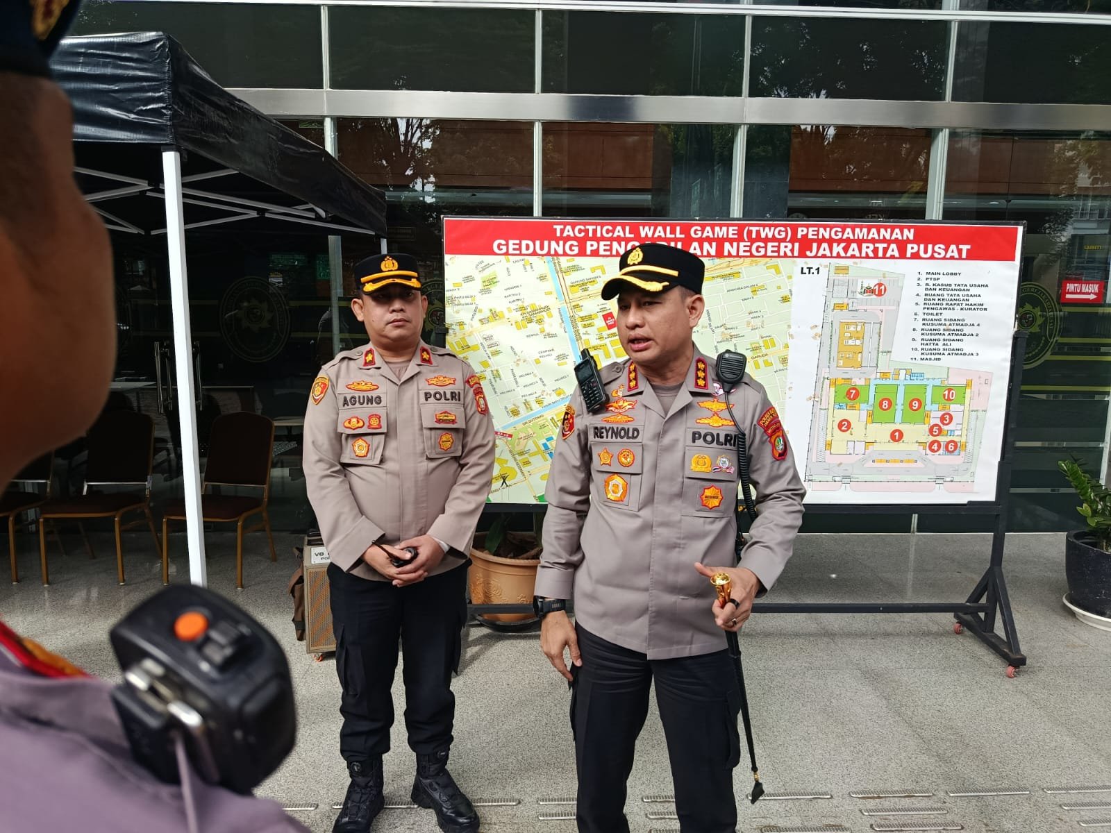 Apel pengamanan dipimpin langsung oleh Kapolres Metro Jakarta Pusat Kombes Pol Dr. Reynold E.P. Hutagalung, S.E., S.I.K., M.Si., M.H. Dalam arahannya, Kapolres menegaskan bahwa pengamanan merupakan bentuk pelayanan Polri kepada masyarakat, baik dalam pengamanan jalannya persidangan maupun penyampaian aspirasi secara demokratis.