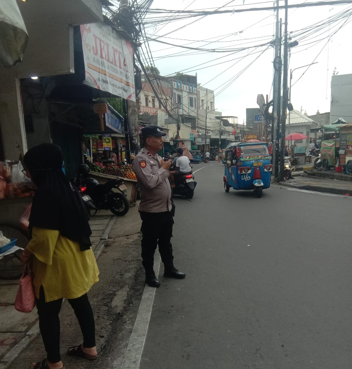 Jakarta Pusat — Kepolisian Sektor Kemayoran mengawal aktivitas pagi warga melalui kegiatan ploting personel di sekitar Pasar Sumur Batu, Kemayoran, Jakarta Pusat, Selasa (6/1/2026). Kegiatan ini dilakukan untuk memastikan kelancaran arus lalu lintas sekaligus menjaga keamanan dan ketertiban masyarakat.