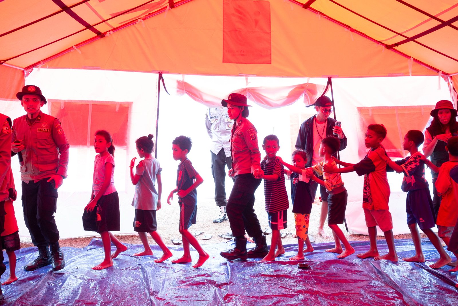 “Tim bergeser ke Posko Apo Tobi untuk melakukan pendampingan psikologi. Sesi I dimulai dengan kegiatan psikososial yakni melakukan kunjungan kepada fasilitas posko disertai dengan interaksi dengan pengungsi,” jelas Yenny.