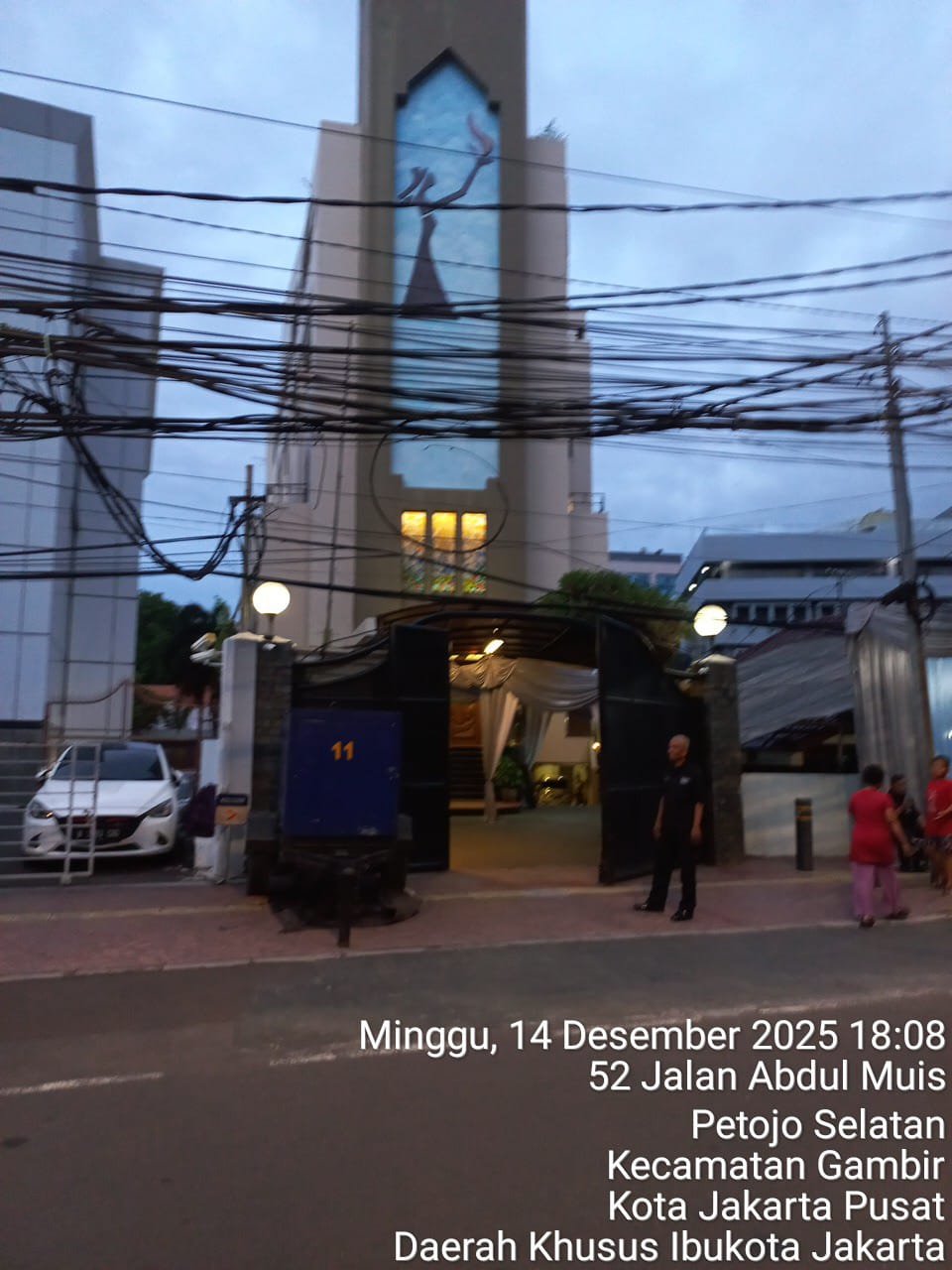 Jakarta Pusat — Jajaran Polsek Metro Gambir memastikan pelaksanaan ibadah Natal di Gereja Kristus Raja, Jalan Tanah Abang III, Kelurahan Petojo Selatan, Kecamatan Gambir, Jakarta Pusat, berlangsung aman, tertib, dan penuh kekhusyukan. Kegiatan pengamanan dan monitoring dilaksanakan pada Minggu, 14 Desember 2025, dengan melibatkan unsur TNI, pemerintah kelurahan, serta elemen masyarakat setempat.