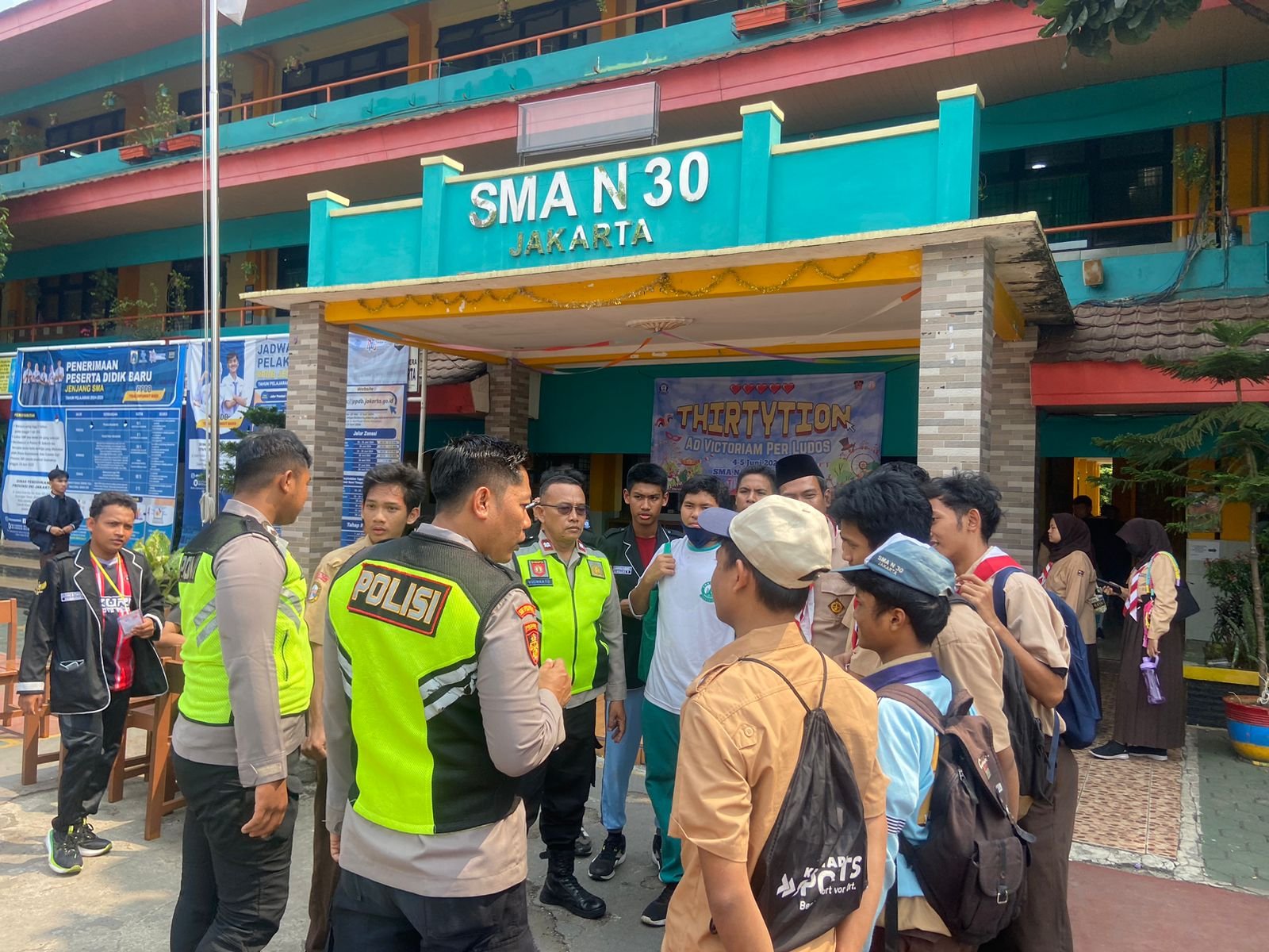 Aiptu Yuswanto bersama Bripka Nanang dan Bripda Rhenold menyampaikan pesan dan himbauan dari Kapolres, himbauan yang disampaikan terkait tawuran pelajar jangan sampai siswa SMA Negeri 30 ada yang terlibat tawuran.