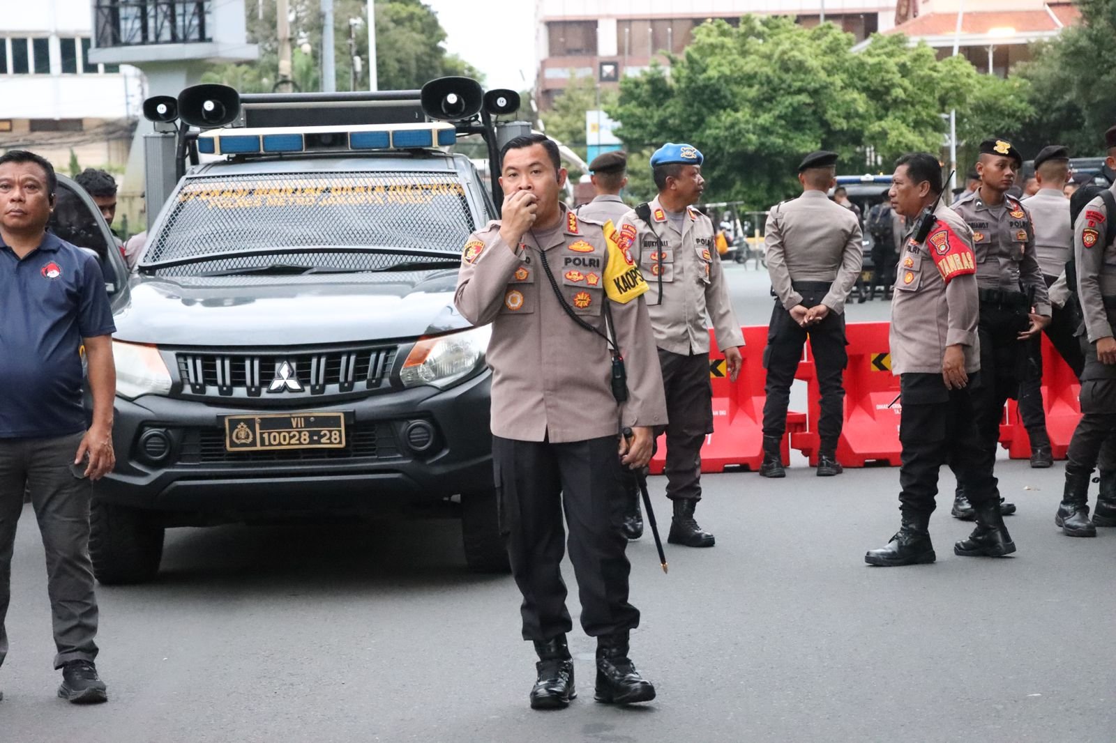Seluruh personel yang terlibat Pengamanan untuk selalu bertindak persuasif, tidak terprovokasi, mengedepankan negoisasi, pelayanan serta humanis. Tidak ada yang membawa senjata api. Perintah dan kendali dari saya sebagai Kapamwil, tidak ada gerakan tambahan yang bersifat pribadi. Layani saudara kita yang akan menyampaikan pendapatnya dengan tulus ikhlas dan humanis.” Tutup Kapolres.