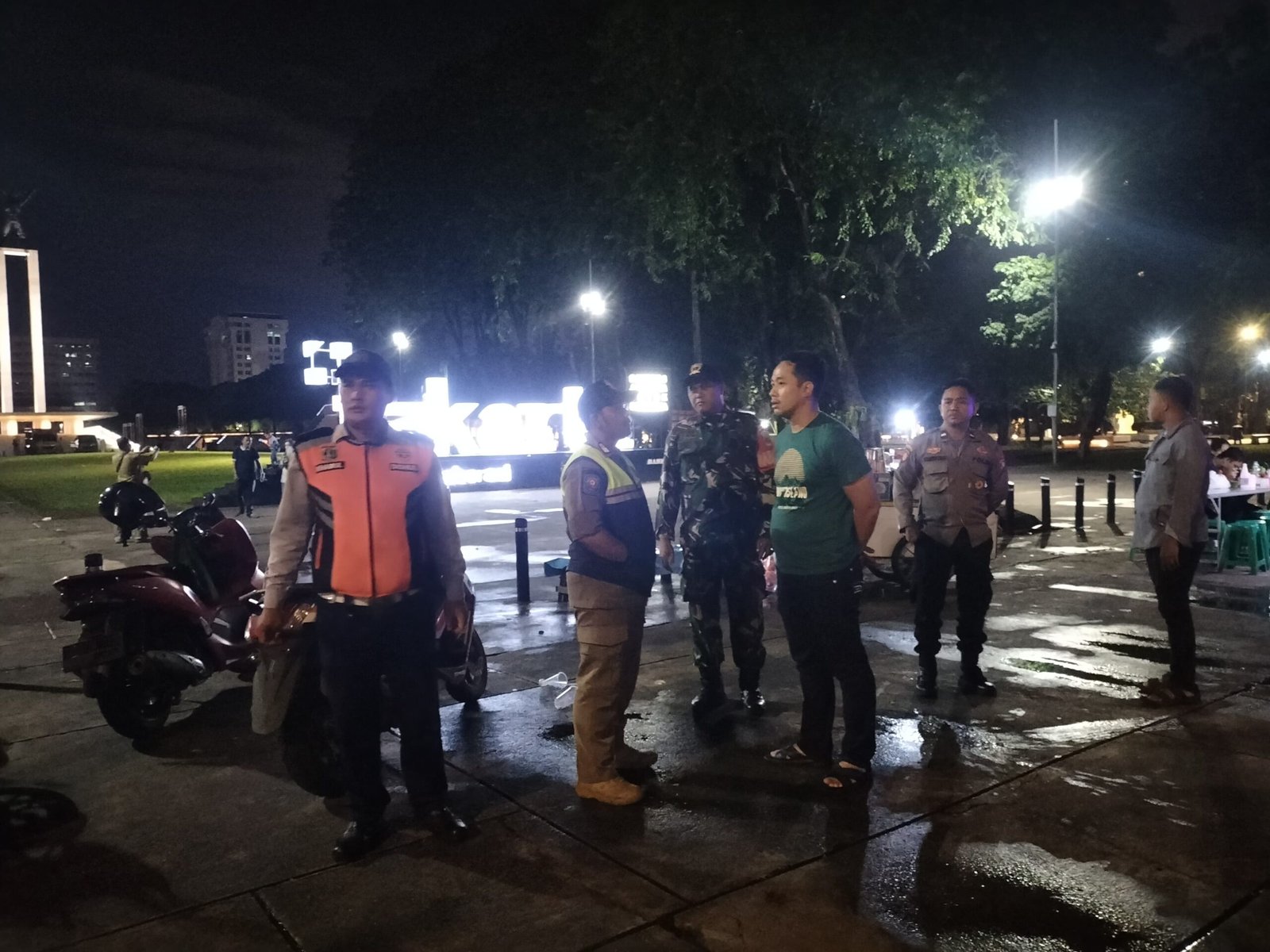 Patroli tersebut dipimpin oleh IPDA Muhammad Apdiyansah, S.H. bersama 11 personel gabungan dari TNI, Polri, dan Satpol PP. Mereka menyisir sejumlah titik rawan, mulai dari seputaran Jl. Lapangan Banteng, Pasar Baru, hingga sepanjang Jl. Gunung Sahari Raya.