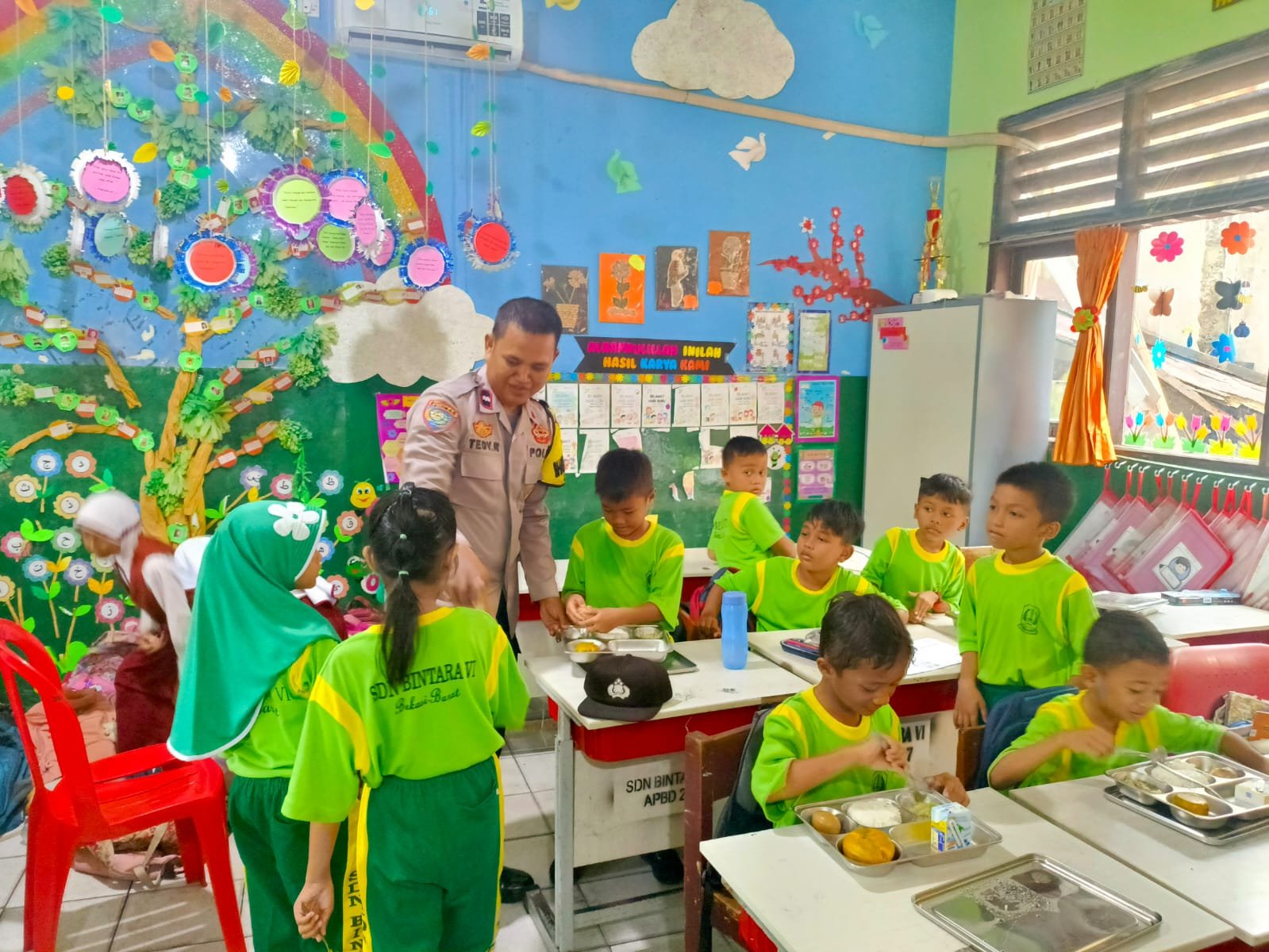 refubliknews.com, – Polsek Bekasi Barat melalui Bhabinkamtibmas Bintara Aipda Tedy Rivaldi, monitoring penyaluran Makan Bergizi Gratis ( MBG ) di SDN Bintara VI Jalan Raya Pondok Cipta Bintara 12 No.20 RT.03 RW.09 Kelurahan Bintara Kecamatan Bekasi Barat Kota Bekasi.Selasa.(25/2-2025).