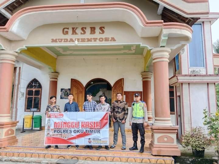 Anggota Polsek Buay Madang Polres Oku Timur Polda Sumsel, melaksanakan giat Minggu Kasih dengan memberikan pelayanan pengamanan di gereja diwilayah Hukum Polsek Buay Madang. Kegiatan ini dalam rangka Pengamanan pelaksanaan Ibadah Kebaktian untuk memberikan rasa aman dan nyaman bagi para jemaat saat melakukan ibadah Kebaktian Minggu di Gereja Katolik GKSBS di Desa Muda Sentosa Kec. Buay Madang Kab Oku Timur, Minggu (26/11/2023).
