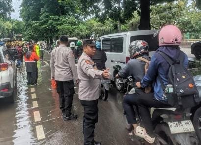 Jakarta Pusat – Personel Polsek Cempaka Putih melaksanakan kegiatan pengecekan genangan air dan pengaturan arus lalu lintas pasca hujan deras yang mengguyur wilayah Jakarta Pusat, Kamis (29/1/2026).