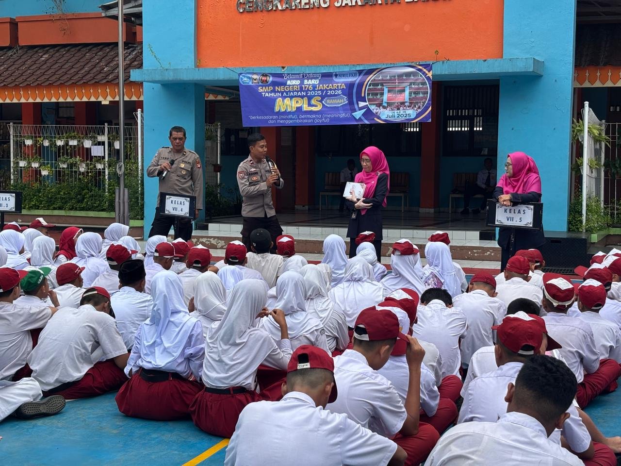 refubliknews.com,- JAKARTA | Polsek Cengkareng memberikan edukasi kepada siswa/i SMPN 176 Jakarta dalam rangka Masa Pengenalan Lingkungan Sekolah (MPLS). Kegiatan ini dilaksanakan pada Senin, 14 Juli 2025, di Lapangan SMPN 176 Jakarta.