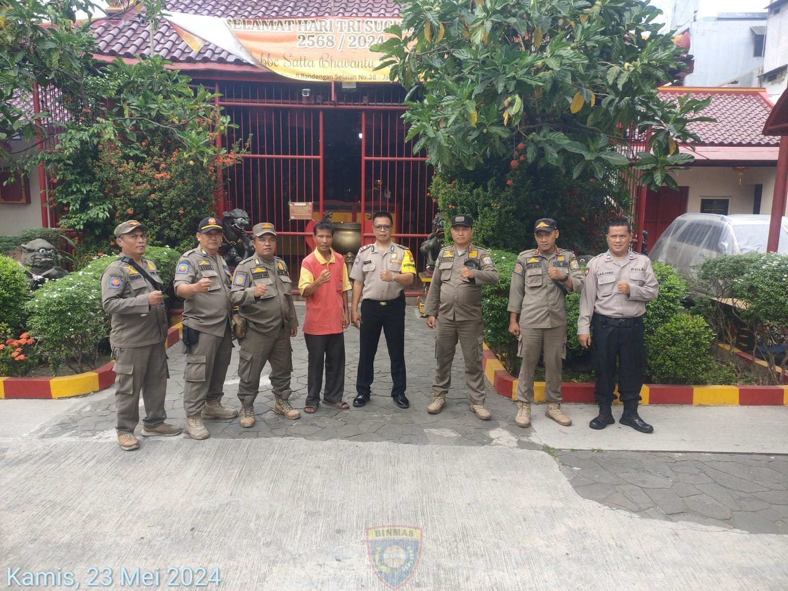 “Hari ini Kamis 23 Mei 2024 Pukul 08:00 WIB Polsek Cilincing melaksanakan tugas Pelayanan Pengamanan pada dua tempat Vihara yaitu :