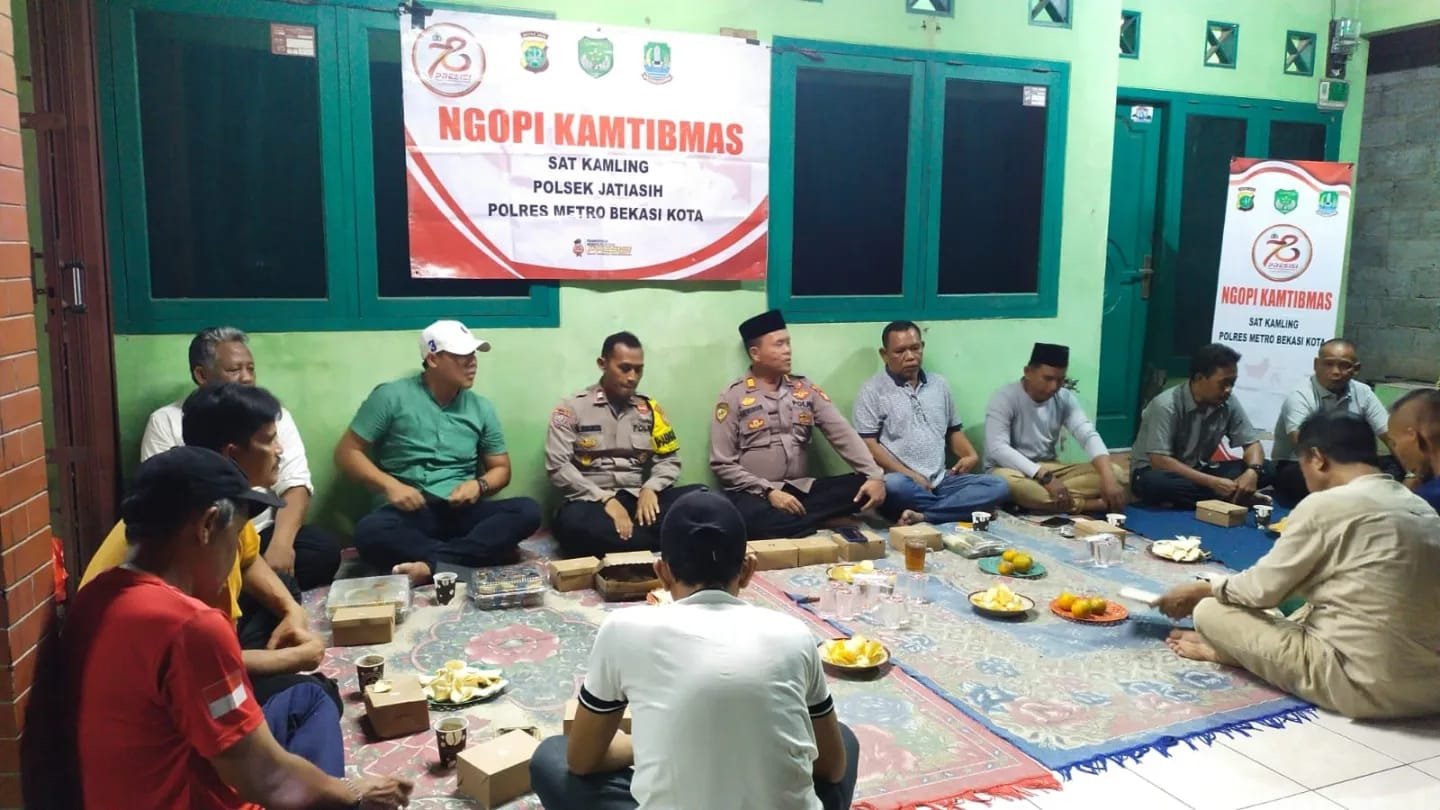 refubliknews.com, – JATIASIH – Dalam rangka menjaga situasi keamanan dan ketertiban masyarakat (Kamtibmas), Polsek Jatiasih menggelar kegiatan “Ngopi Kamtibmas” yang berlangsung di kediaman Bapak Ceko Sata di Kampung Pondok Benda, RT.04/04 Kelurahan Jatirasa Kecamatan Jatiasih, yang dihadiri oleh Kanit Binmas Polsek Jatiasih, AKP H.R. Amiruddin, A.S., S.H., dan Bhabinkamtibmas Kelurahan Jatirasa Aiptu M. Mokhsin P. Jum’at malam (27/9)