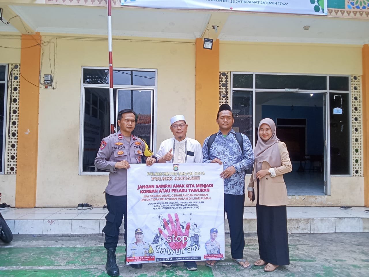 refubliknews.com, – JATIASIH – Polsek Jatiasih melalui Bhabinkamtibmas Kelurahan Jatikramat Aipda Setyo Wardoyo, S.E., melaksanakan kegiatan pemasangan spanduk himbauan anti tawuran di Jl. Dr. Ratna Gang H. Melin No. 84 D, RT.05/01 Kelurahan Jatikramat Kecamatan Jatiasih. Sabtu (12/10)
