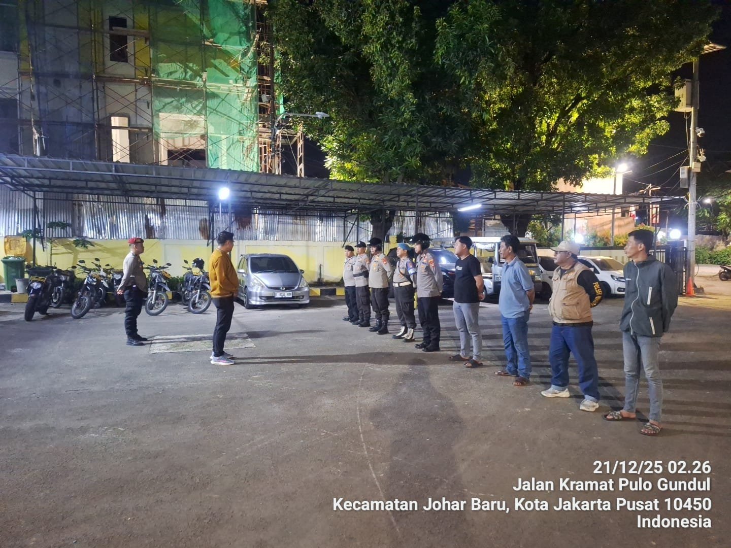 Jakarta Pusat — Guna mengantisipasi potensi gangguan keamanan dan ketertiban masyarakat (guantibmas), Polsek Johar Baru melaksanakan apel patroli cipta kondisi di halaman Mapolsek Johar Baru, Minggu (21/12/2025) pukul 02.30 WIB.