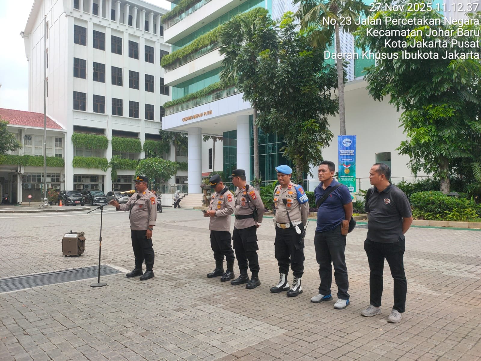 refubliknews.com, || Jakarta Pusat – Polsek Johar Baru menggelar Apel Pelayanan Aksi Unras di depan Kantor BPOM, Jl. Percetakan Negara, Kamis (27/11/2025) pukul 11.00 WIB. Apel dipimpin Wakapolsek Johar Baru, AKP Aris Setiyawan, dan diikuti 41 personel, terdiri dari 31 personel Polsek Johar Baru serta 10 personel Pamdal BPOM. Aksi unjuk rasa direncanakan oleh Korps Mahasiswa Nusantara dengan jumlah massa sekitar 10 orang.
