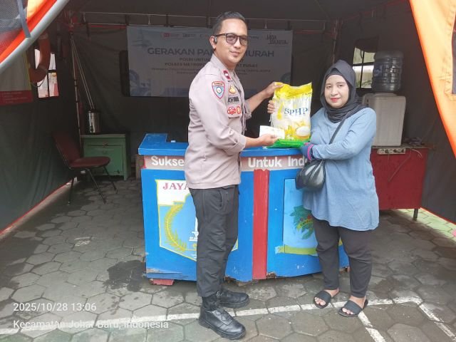 refubliknews.com, || Jakarta Pusat – Dalam rangka membantu masyarakat dan menjaga stabilitas harga bahan pokok, Polsek Johar Baru kembali melaksanakan kegiatan Gerakan Pangan Murah (GPM) Beras Bulog Tahap 2 di wilayah Kelurahan Kampung Rawa, Selasa (28/10/2025) pukul 12.00 WIB.