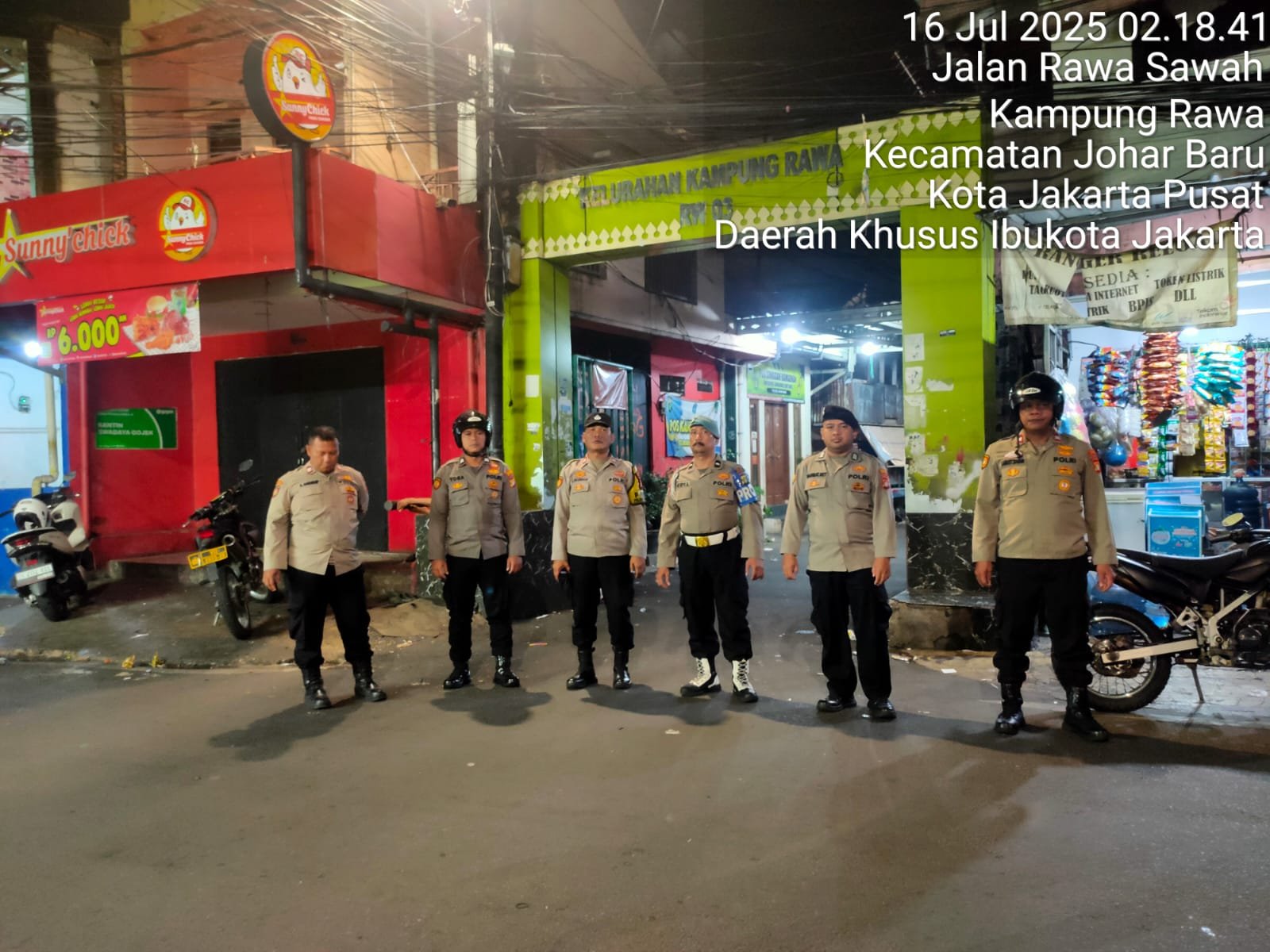 refubliknews.com, || Jakarta Pusat — Dalam rangka menciptakan rasa aman dan mencegah potensi gangguan keamanan dan ketertiban masyarakat (guantibmas), Polsek Johar Baru kembali mengintensifkan kegiatan Patroli Mobile dan Strong Point di sejumlah titik rawan wilayah hukumnya pada Rabu dini hari, 16 Juli 2025, mulai pukul 02.05 WIB.