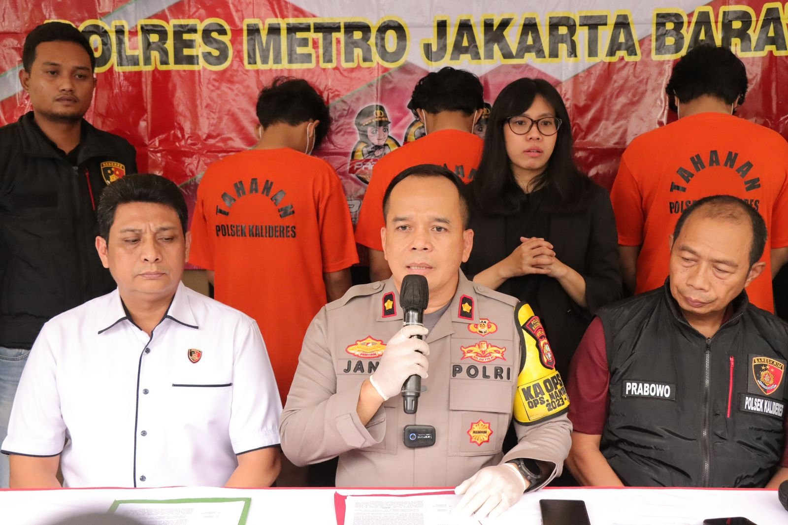Kapolsek Kalideres Polres Metro Jakarta Barat, Kompol Abdul Jana didampingi Kanit reskrim AKP Aep Haryaman mengungkapkan modus operandi para pelaku dalam konferensi pers yang digelar di Mapolsek Kalideres.