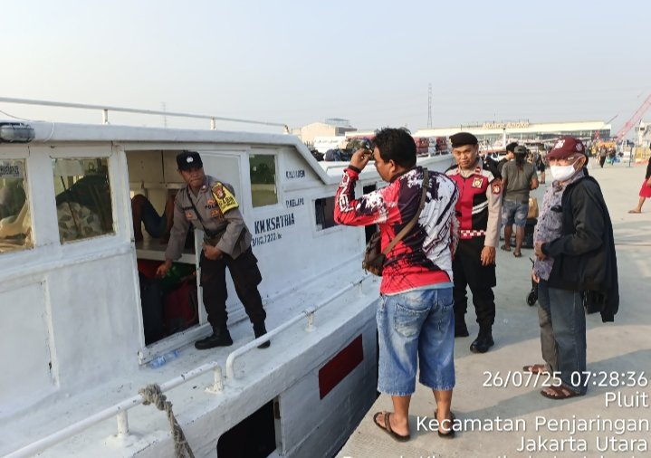 refubliknews.com,- Jakarta, 26 Juli 2025 — Personel Polsek Kawasan Sunda Kelapa Polres Pelabuhan Tanjung Priok melaksanakan kegiatan pengamanan dan pelayanan wisatawan yang akan berangkat menuju Kepulauan Seribu melalui Dermaga Kali Adem, Pelabuhan Muara Angke, pada Sabtu pagi (26/07).
