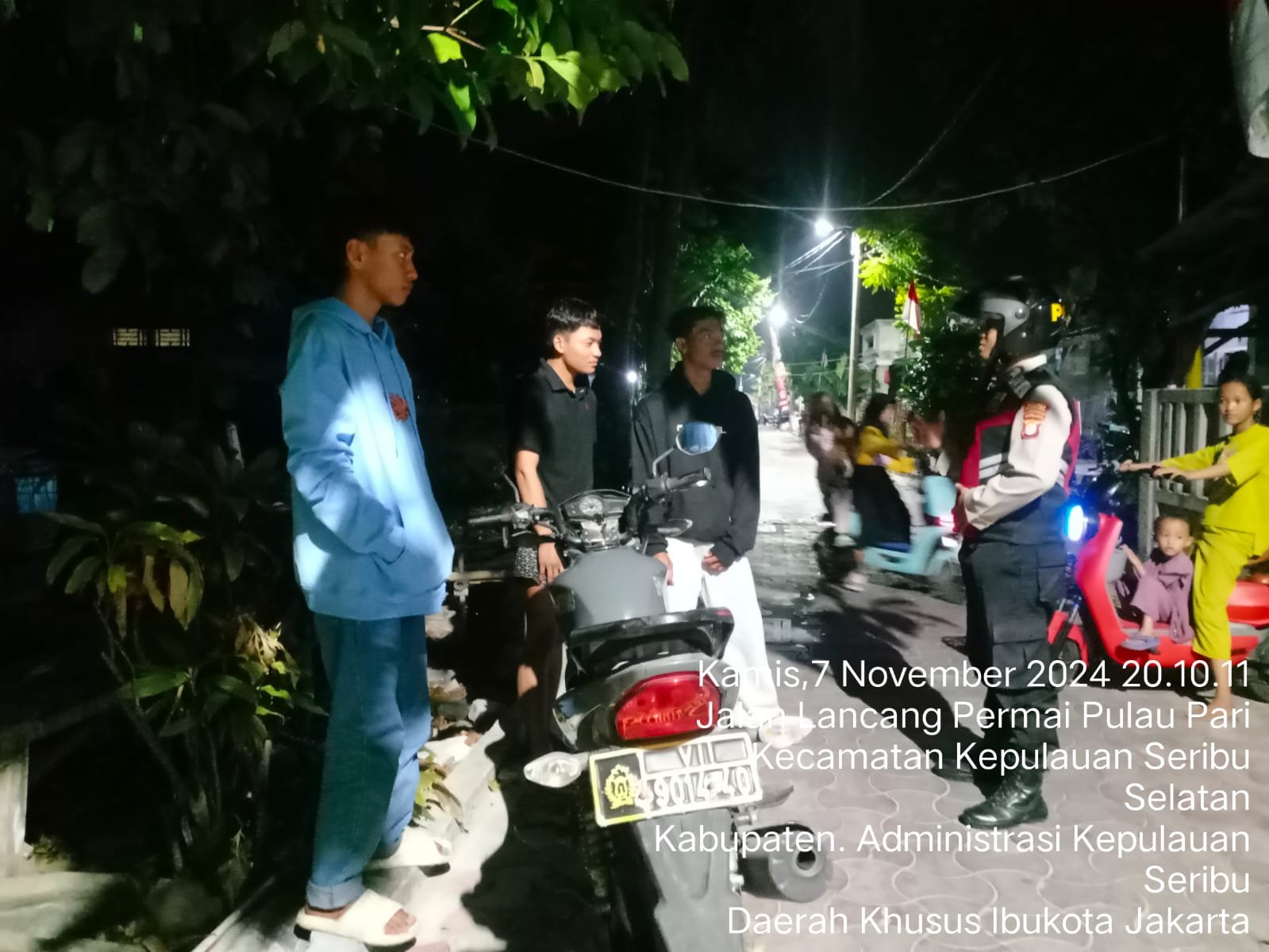 refubliknews.com, – Jakarta – Polsek Kepulauan Seribu Selatan, Polres Kepulauan Seribu, melaksanakan Kegiatan Patroli Malam Perintis Presisi pada Jumat (08/11/2024) untuk menjaga keamanan dan ketertiban masyarakat (kamtibmas) sekaligus mengantisipasi gangguan kamtibmas di wilayah tersebut. Patroli yang dipimpin oleh Kapolsek Kepulauan Seribu Selatan, AKP Sanyata Harsono, menyasar beberapa titik yang sering menjadi tempat berkumpulnya remaja pada malam hari, dengan tujuan mencegah potensi tawuran dan pelanggaran hukum lainnya.