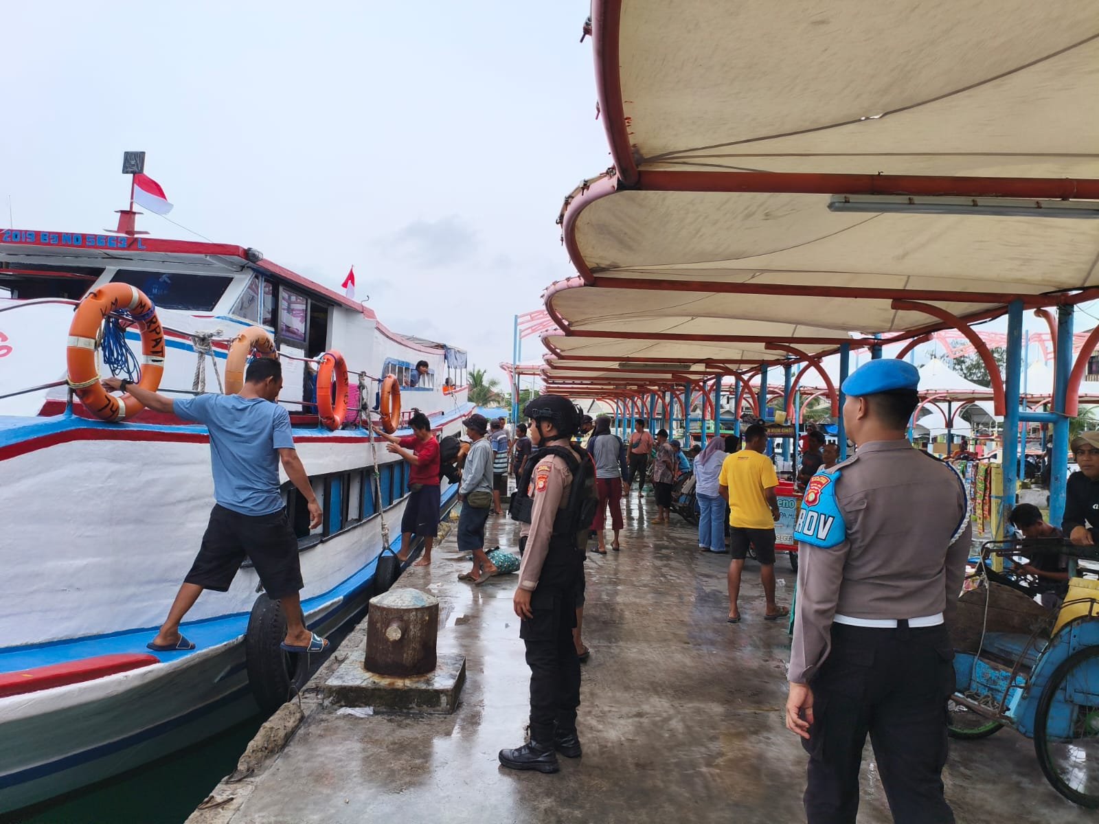 Dalam kegiatan pengamanan ini, petugas gabungan melakukan pemeriksaan dan pengawasan terhadap barang-barang yang masuk melalui dermaga. Selain itu, aparat juga membantu penumpang yang turun dari kapal untuk memastikan kelancaran arus kedatangan serta memberikan rasa aman. Hal ini dilakukan guna mengantisipasi potensi gangguan keamanan maupun tindak kriminal di wilayah perairan dan pelabuhan.