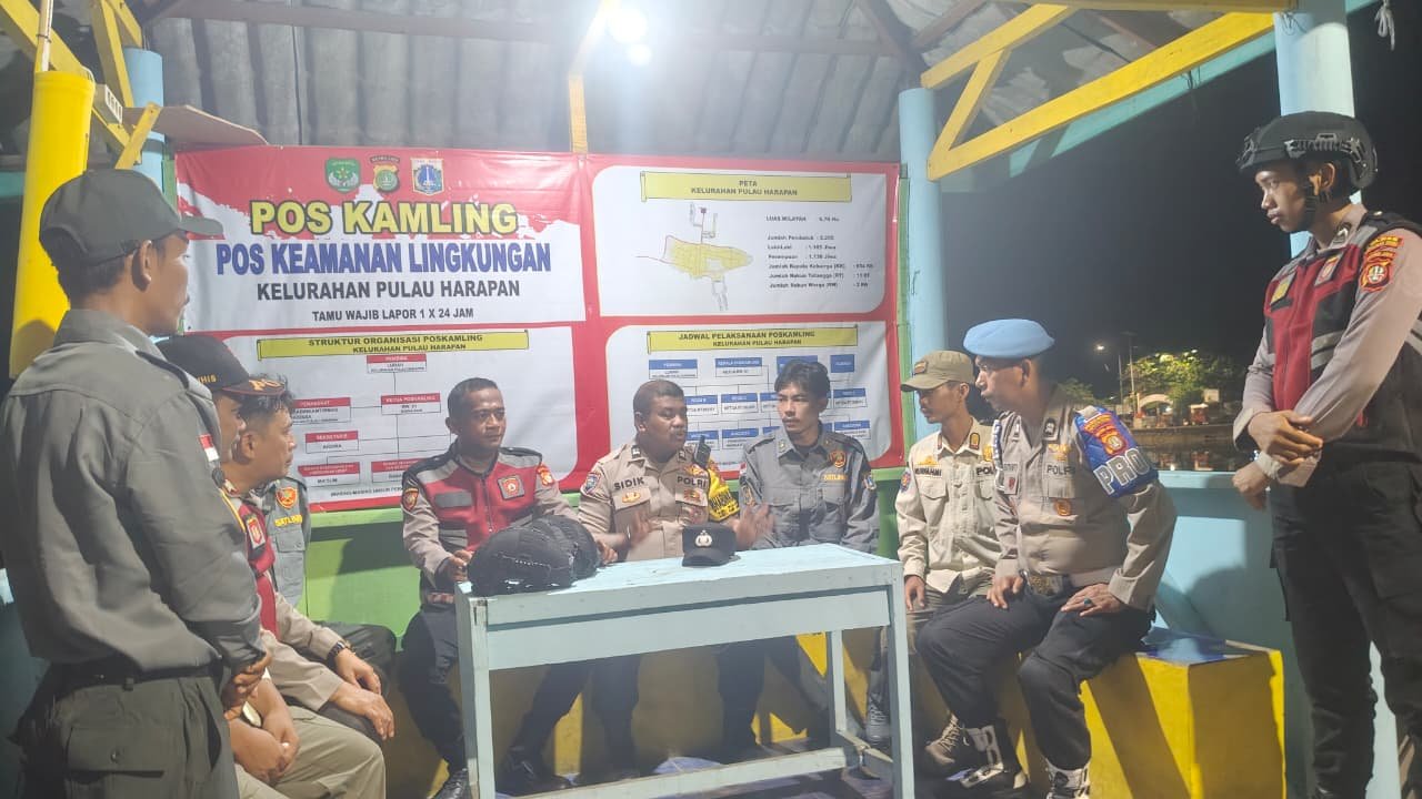 Jajaran Bhabinkamtibmas Polsek Kepulauan Seribu Selatan bersama unsur tiga pilar melakukan patroli dan pengecekan kesiapan petugas pos kamling dalam menjalankan tugas menjaga keamanan lingkungan. Petugas juga memberikan arahan agar seluruh anggota poskamling tetap waspada, rutin melakukan patroli malam, dan segera melaporkan setiap potensi gangguan Kamtibmas kepada pihak kepolisian.