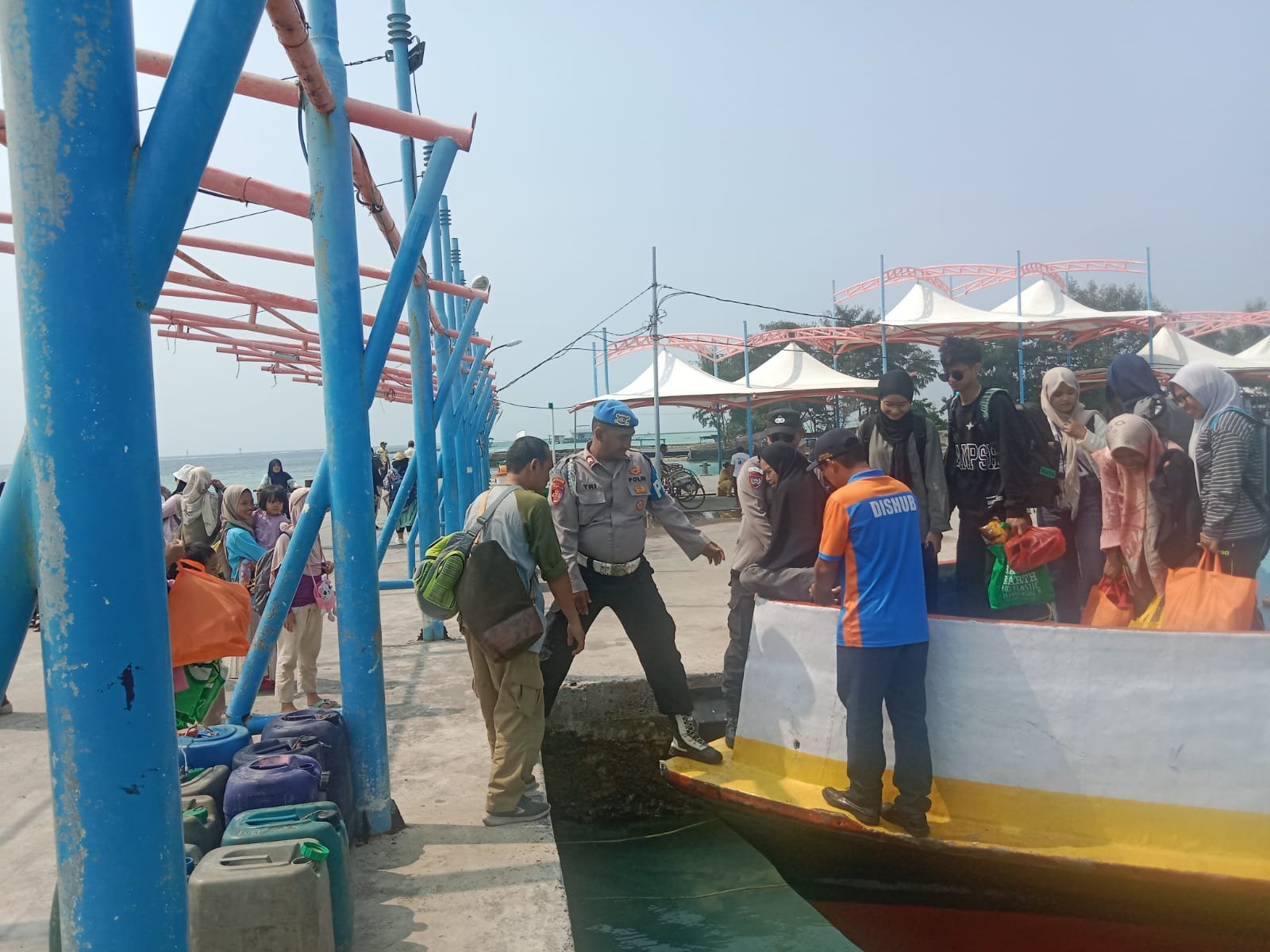 Selain menjaga keamanan, petugas Polsek Kepulauan Seribu Utara juga menunjukkan sisi humanis dengan membantu penumpang turun dari kapal. Kehadiran petugas yang ramah dan membantu ini diharapkan dapat memberikan kenyamanan dan rasa aman bagi para penumpang dan wisatawan yang datang ke Pulau Pramuka.