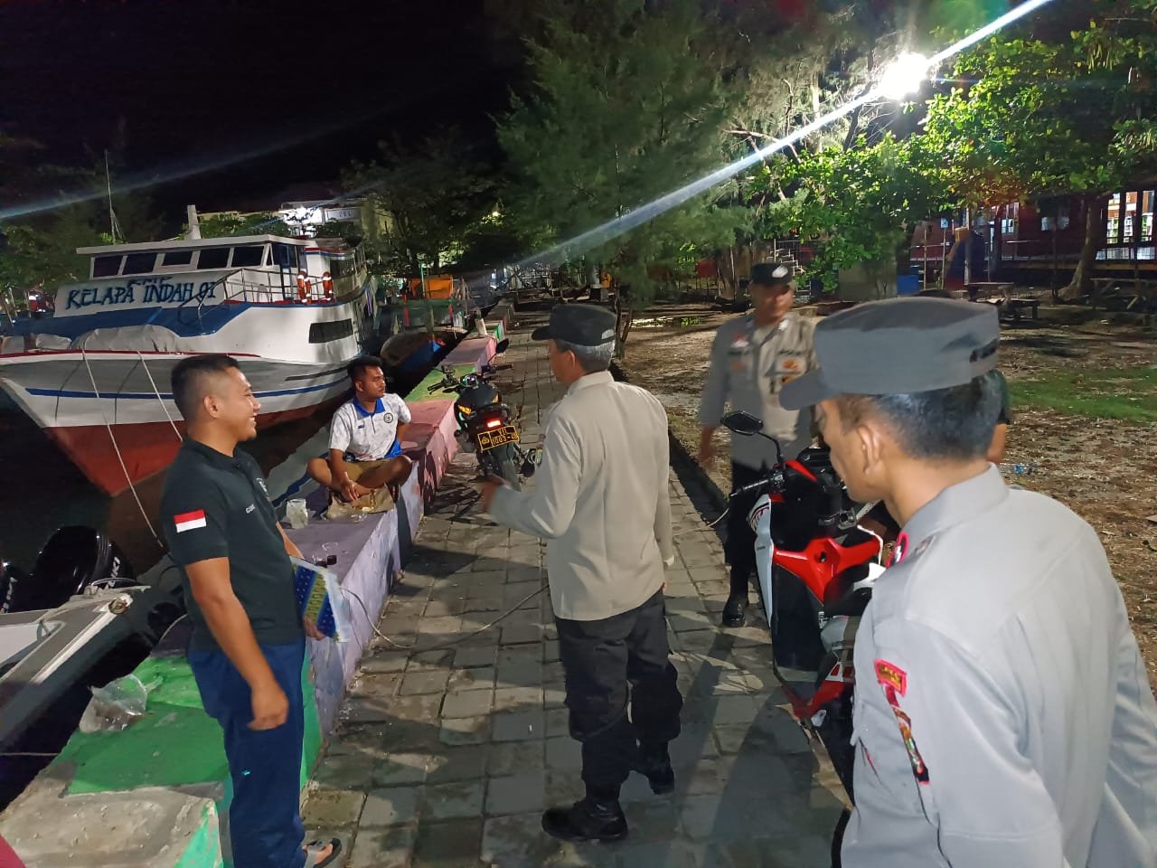 Jakarta -Sabtu malam (02/12/2023), Polsek Kepulauan Seribu Utara, Polres Kepulauan Seribu, kembali melaksanakan patroli malam dialogis secara rutin di Pulau Kelapa sebagai bagian dari upaya preventif untuk mengantisipasi kenakalan remaja dan menyebarnya informasi hoaks serta paham radikal yang dapat mengganggu kedamaian menjelang Pemilu 2024.