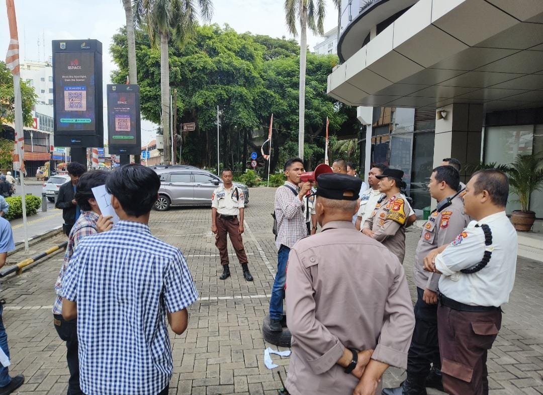 refubliknews.com, – Jakarta Pusat – Kepolisian Sektor Metro Menteng melakukan pengamanan terhadap aksi unjuk rasa yang dilakukan oleh Gerakan Mahasiswa Hukum Pemerhati Sosial (GMHPS) di depan Kantor Pusat PD Pasar Jaya, Jalan Cikini Raya No. 90, Menteng, Jakarta Pusat. Kamis (20/03/2025)
