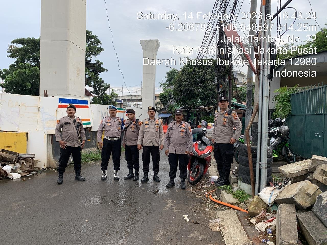 Jakarta Pusat — Upaya pencegahan gangguan keamanan dan ketertiban masyarakat (guankamtibmas) terus digencarkan jajaran Polsek Metro Menteng. Kali ini, personel Polsek Metro Menteng yang terdiri dari Aiptu Setiawan, Aiptu Andri, Aiptu Singgih, Aipda Victor Wahyudi, Aipda Dadang, dan Aipda Tri Sugiyarto melaksanakan patroli dialogis di wilayah perbatasan rawan tawuran warga, tepatnya di kawasan Manggarai–Tambak Ujung, Kelurahan Pegangsaan, Kecamatan Menteng, Jakarta Pusat. Sabtu (14/2/2026)