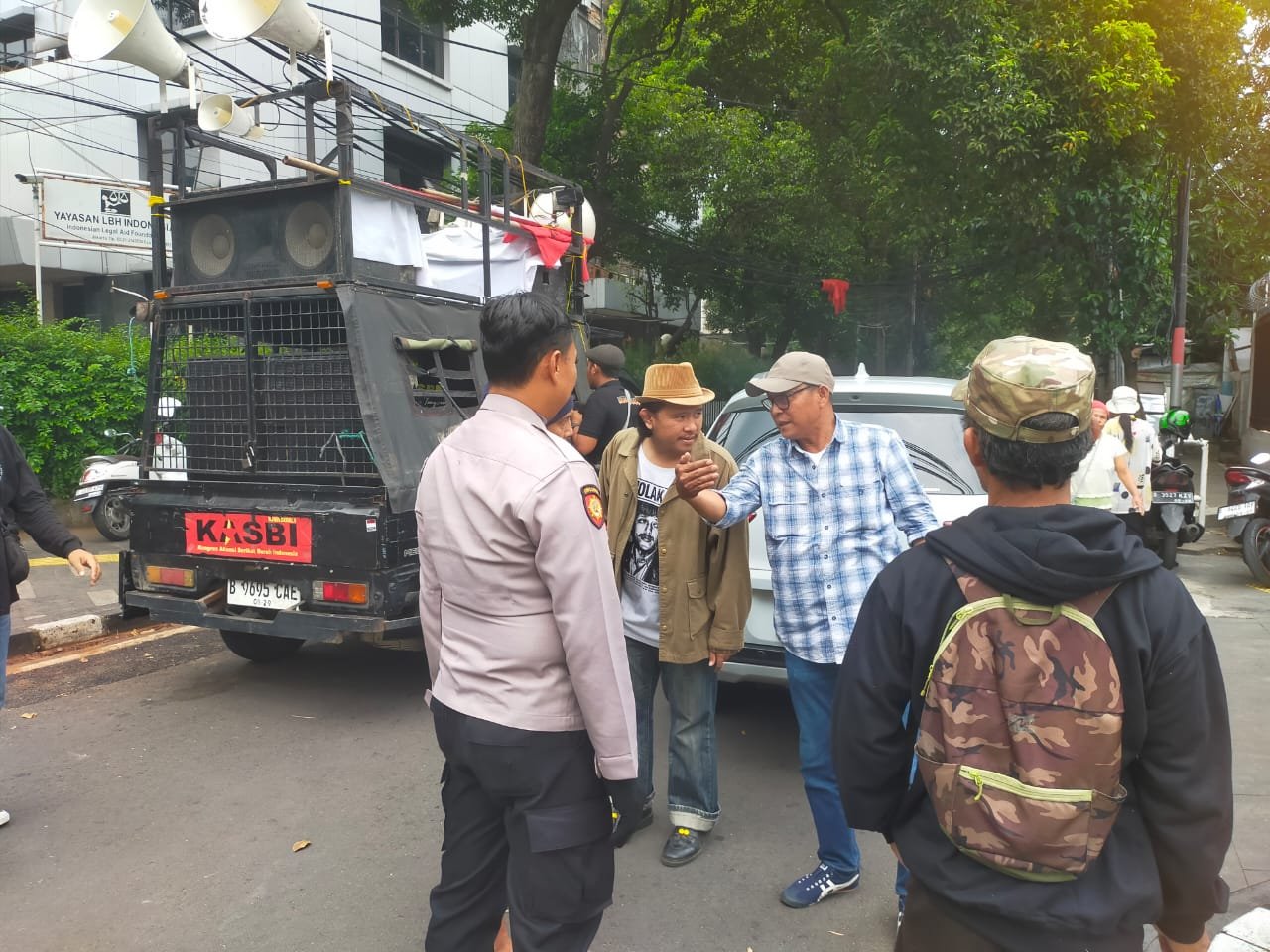 Polsek Metro Menteng menurunkan tim kecil berjumlah lima personel untuk melakukan pemantauan langsung di lokasi. Pengamanan dipimpin Perwira Pengendali (Padal) Kanit Intelkam Polsek Metro Menteng, AKP Leonard Sipahutar.