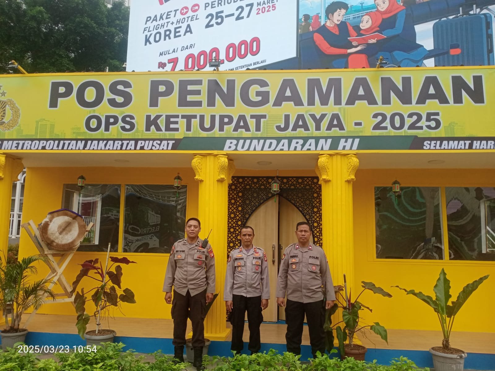 refubliknews.com, – Jakarta Pusat – Dalam rangka memastikan keamanan dan kelancaran perayaan Hari Raya Idul Fitri 1446 H / 2025 M, Polsek Metro Menteng melaksanakan kegiatan pengamanan di Pos Pengamanan (Pos Pam) Ketupat Jaya 2025 yang berlokasi di Bundaran Hotel Indonesia (HI). Kegiatan ini dipimpin oleh Iptu Aang Suryana, dengan didampingi oleh Aiptu Herru Wicahyono dan Aipda Joko Triono. Minggu (23/03/2025)