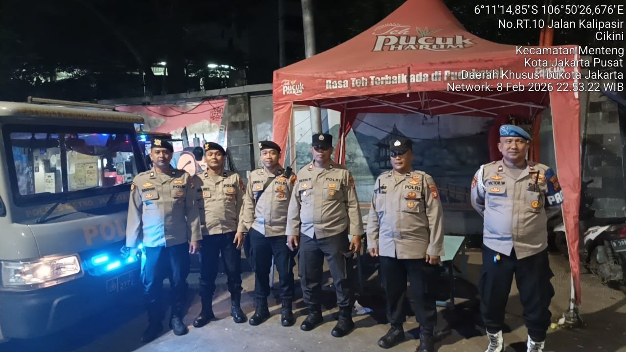 refubliknews.com, || Jakarta Pusat – Guna menjaga situasi keamanan dan ketertiban masyarakat (kamtibmas) tetap kondusif, Polsek Metro Menteng kembali melaksanakan patroli cipta kondisi dengan menyasar wilayah perbatasan Kwitang–Kalipasir, Menteng, Jakarta Pusat. Kegiatan ini difokuskan untuk mengantisipasi potensi tawuran warga, gangguan kamtibmas, serta kerawanan yang kerap muncul pada malam hingga dini hari. Senin (9/2/2026)