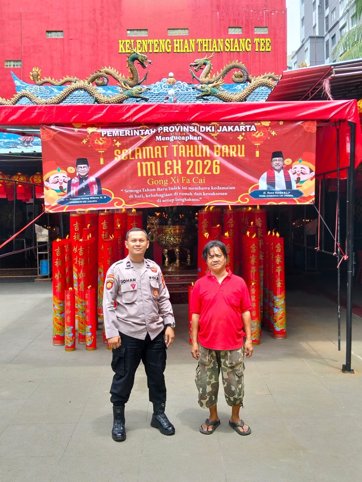 Jakarta Pusat — Pelaksanaan pelayanan perayaan Tahun Baru Imlek 2026 di rumah ibadah berlangsung dengan tertib dan kondusif. Aparat dari Polsek Metro Tanah Abang melakukan monitoring langsung di Klenteng Hian Thian Siang Tee yang berlokasi di kawasan Tanah Abang, Jakarta Pusat, Selasa (17/2/2026) siang.