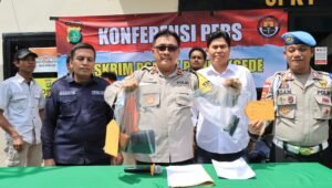 BEKASI – Kapolsek Pondok Gede pimpin kegiatan gelar ungkap kasus perkara tindak pidana pemersan dan pengancaman sebagaimana dimaksud dalam pasal 368 KUHPidana dengan ancaman pidana selama lamanya 12 tahun penjara bertempat di Mapolsek Pondok Gede, Kamis (25/1/2024).