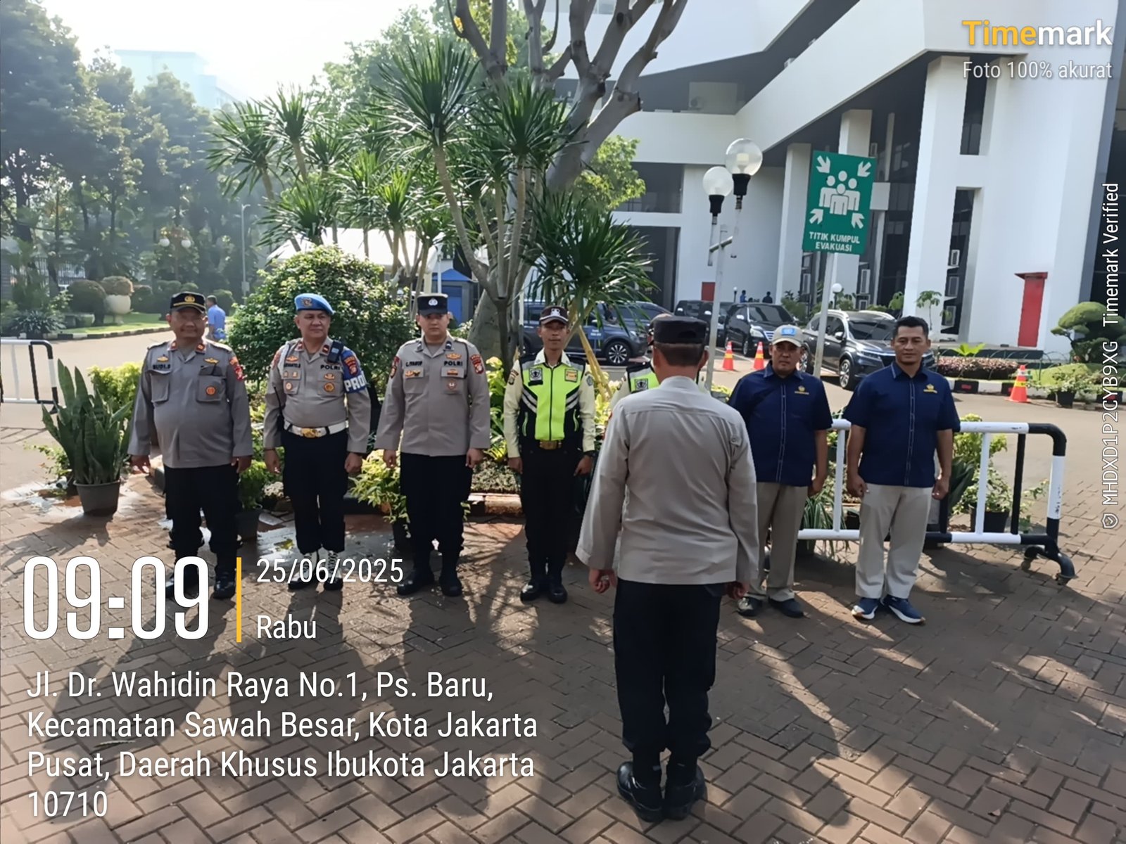 refubliknews.com, || Jakarta Pusat — Polsek Sawah Besar menggelar apel pengamanan jelang aksi unjuk rasa oleh Koalisi Mahasiswa Pemuda Anti Korupsi Indonesia di depan Kementerian Keuangan RI, Jalan Dr. Wahidin, Sawah Besar, Jakarta Pusat, Rabu (25/6).