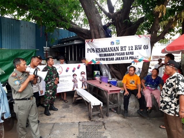 Kegiatan yang dimulai pukul 09.30 WIB tersebut dihadiri oleh personel Pol PP Kelurahan Pasar Baru, Satpol PP Kecamatan Sawah Besar, LMK, Ketua RT 012 beserta perangkat, Babinsa, serta Bhabinkamtibmas. Petugas yang memimpin kegiatan di lapangan adalah Aipda Bambang S, selaku Bhabinkamtibmas Kelurahan Pasar Baru.