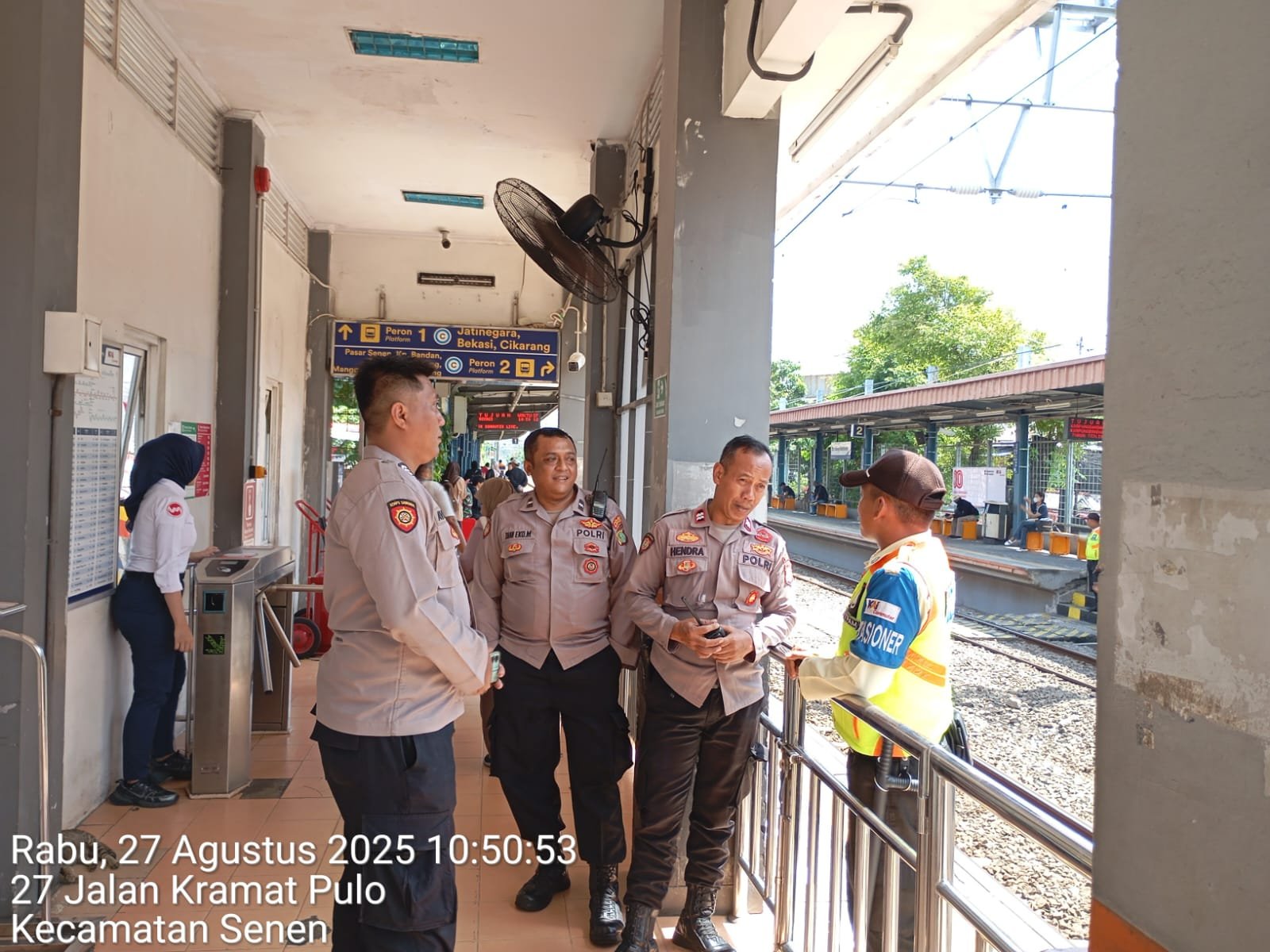 refubliknews.com, || Jakarta – Jajaran Polsek Senen melaksanakan patroli sambang dan himbauan kamtibmas di Stasiun Kereta Api Gang Sentiong, Jalan Kramat Sentiong, Kelurahan Kramat, Kecamatan Senen, Jakarta Pusat, Rabu (27/8/2025).