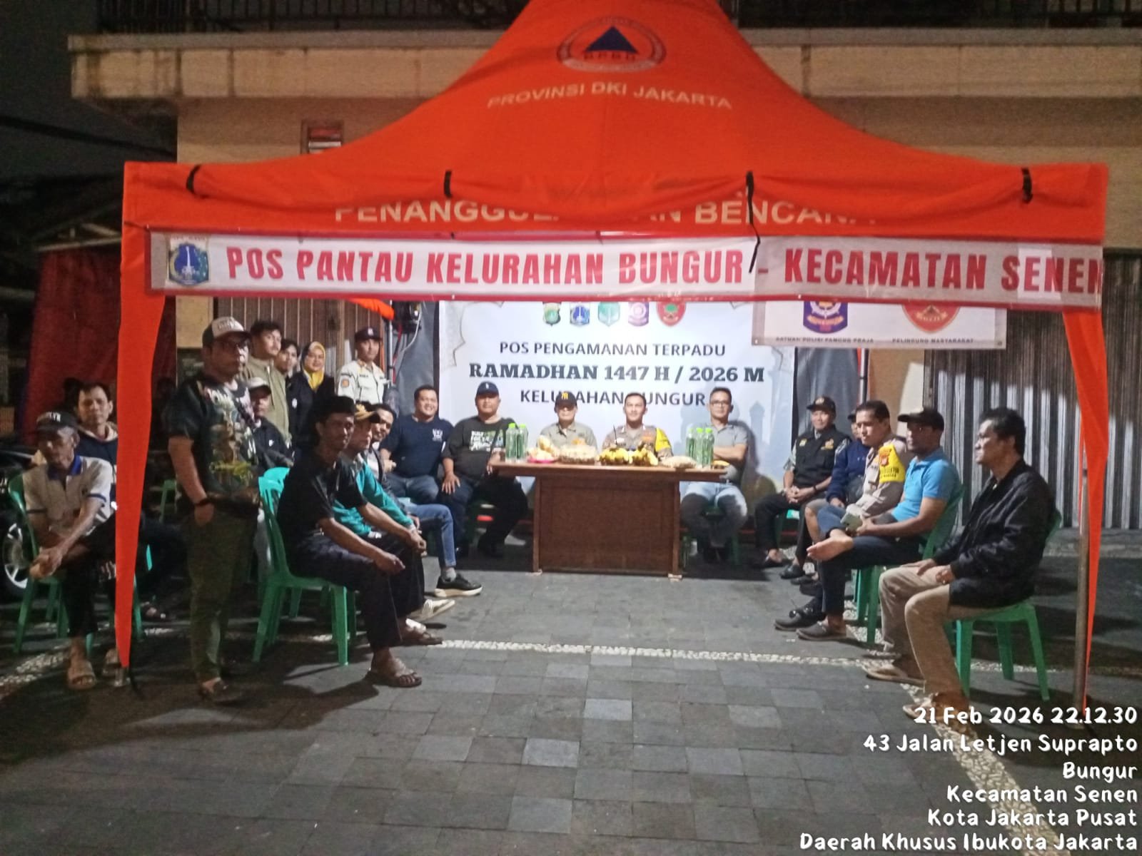 Jakarta Pusat, – Petugas gabungan menggelar kegiatan Pos Pantau Pengamanan Ramadan 1447 H/2026 M di Jalan Letjend Suprapto, Kelurahan Bungur, Kecamatan Senen, Jakarta Pusat, pada Sabtu (21/2/2026) pukul 22.00 WIB. Kegiatan ini dilakukan untuk mengantisipasi potensi gangguan keamanan dan ketertiban masyarakat (kamtibmas), terutama setelah salat tarawih, menjelang sahur, hingga setelah waktu makan sahur.
