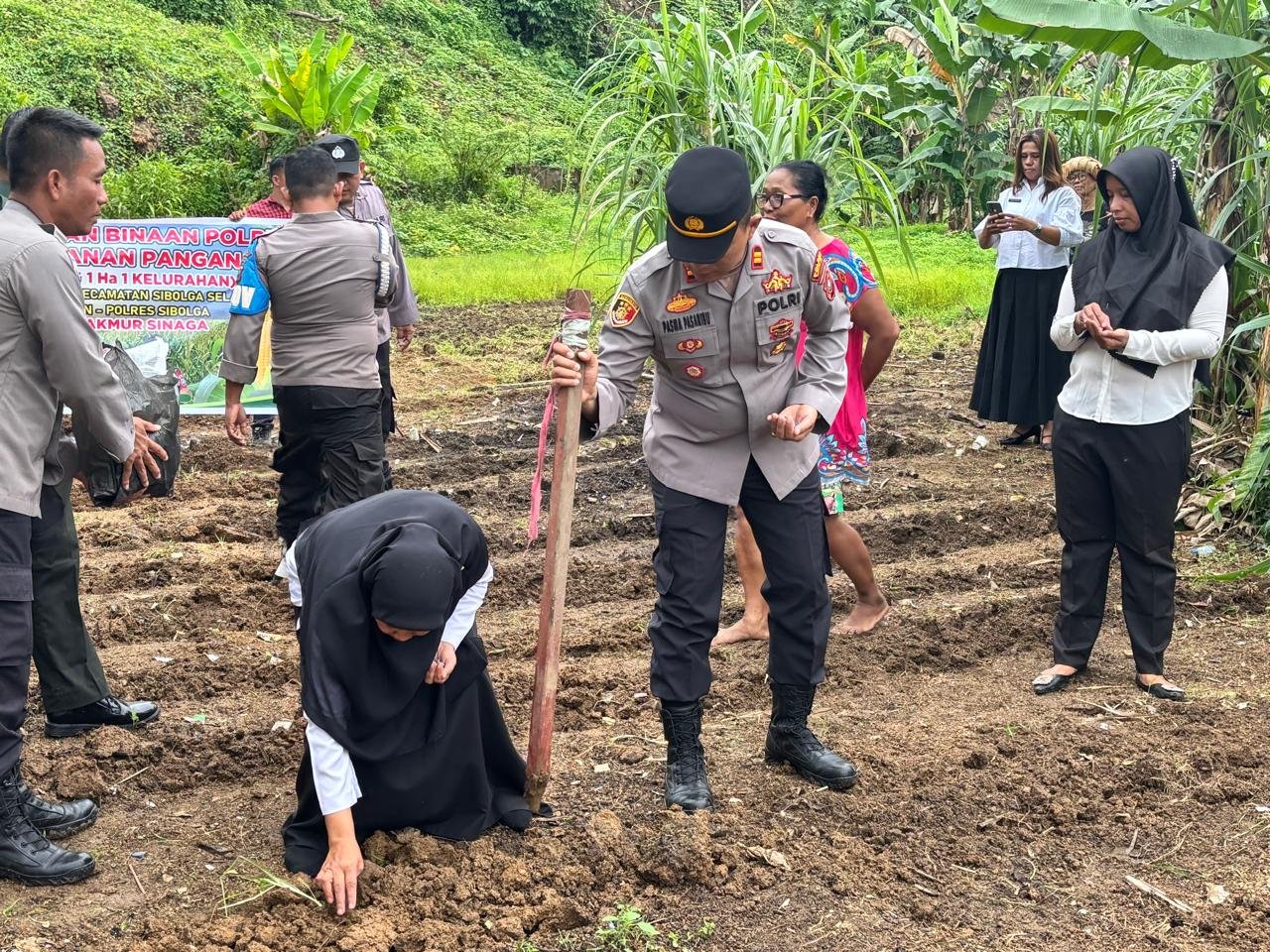ps. Kapolsek Sibolga Selatan Polres Sibolga IPTU Pasma Pasaribu, SE, MM menjelaskan, Penanaman jagung tersebut menjadi bagian dari upaya konkret Polsek Sibolga Selatan dalam mewujudkan visi Indonesia sebagai lumbung pangan dunia melalui penguatan ketahanan pangan lokal. Kegiatan berjalan dengan lancar, aman, dan kondusif hingga pukul 10.30 WIB, jelas Kapolsek.
