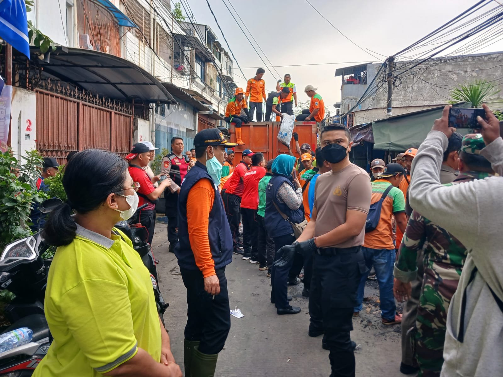 Sebuah aksi nyata yang memperlihatkan kepedulian dan kebersamaan untuk melaksanakan kegiatan kerja bakti di lokasi pasca kebakaran