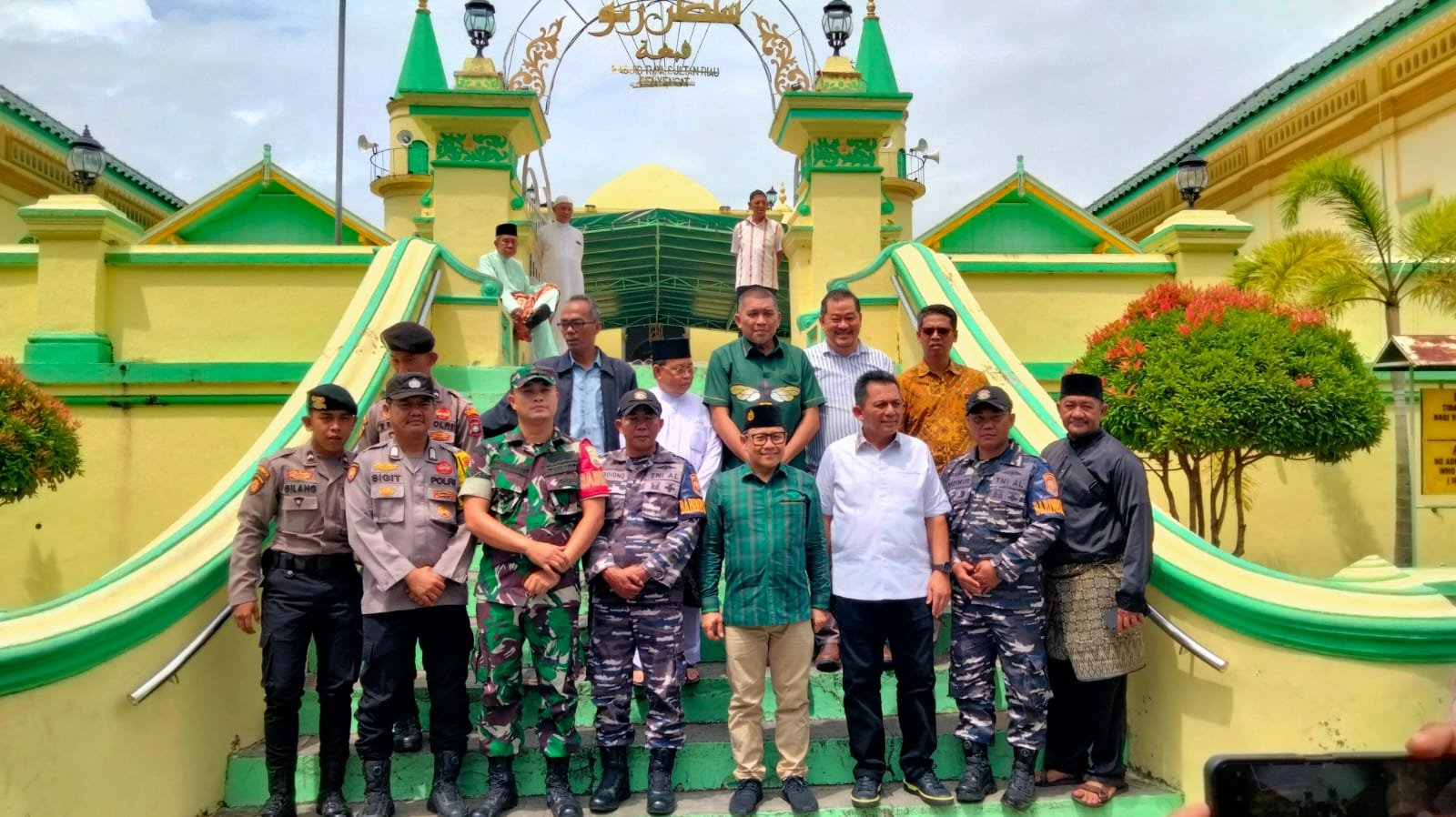 refubliknews.com, – TNI AL, Tanjung Pinang,- Personel Posbinpotmar Pulau Penyengat Lanal Bintan turut menyambut Kedatangan Menteri Koordinator Bidang Pemberdayaan Manusia RI Dr. (HC). Drs. A. Muhaimin Iskandar beserta rombongan dalam rangka kunjungan kerja UMKM dan Ziarah di Pulau Penyengat Kota Tanjung Pinang, Sabtu (25/01/2025).