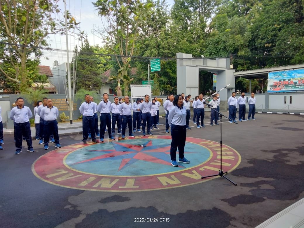 TNI AL, Bandung, 24 Januari 2023,– Komandan Pangkalan TNI AL (Danlanal) Bandung Kolonel Laut (KH/W) Dr. Renny Setiowati, S.T., M.Sc., M.Tr.Hanla., memimpin Apel Khusus dan Olahraga Bersama Prajurit dan PNS secara virtual, bertempat di Lapangan Apel Mako Lanal Bandung, Jalan Aria Jipang No. 8 Kota Bandung, Selasa (24/01/2023).
